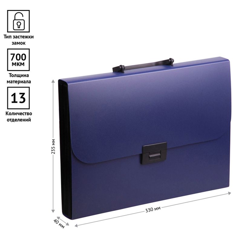 Папка-портфель 13 отделений OfficeSpace А4, 700мкм, на замке, пластик, синий