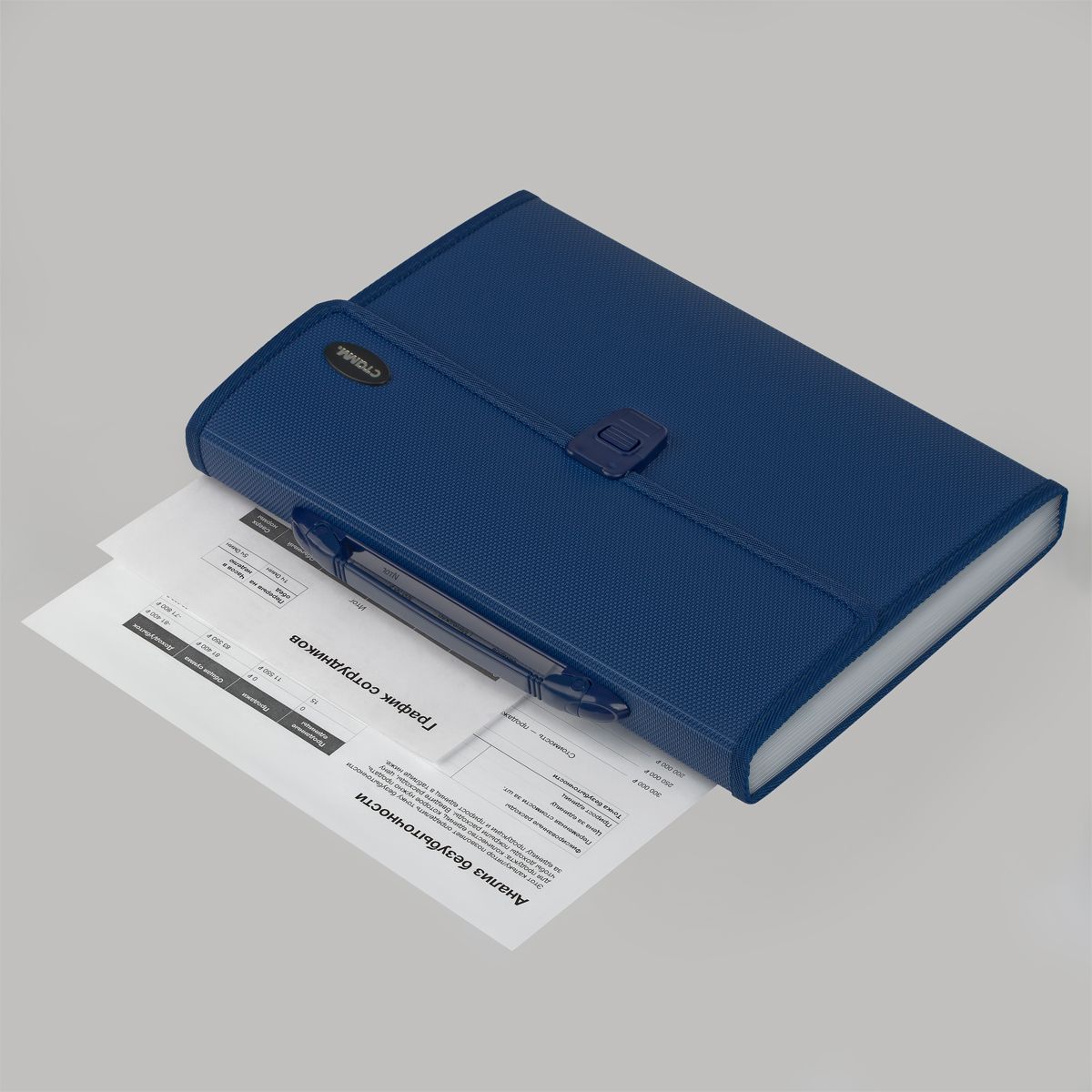 Папка-портфель 13 отделений СТАММ А4, 330*240*40мм, 1000мкм, синяя