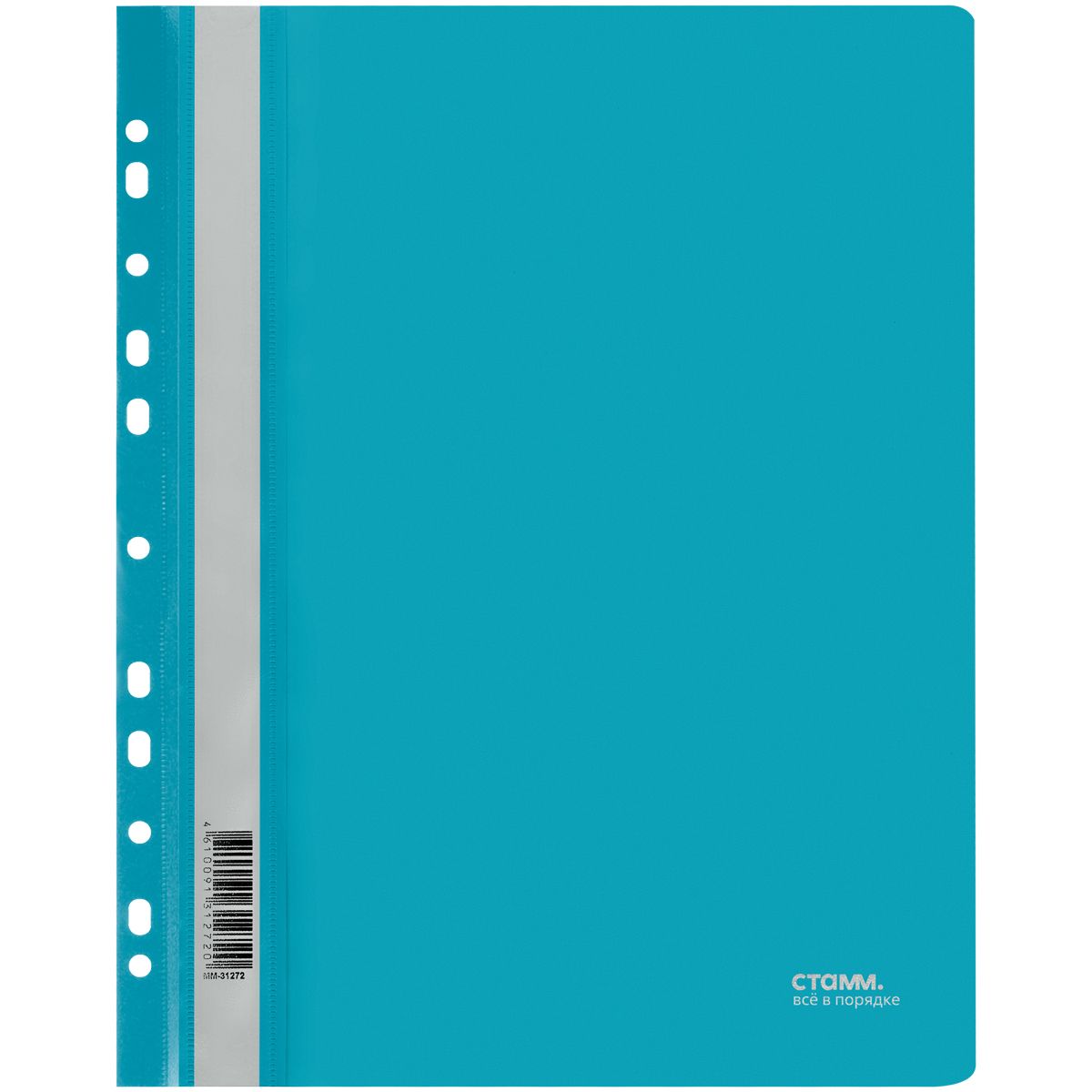 Папка-скоросшиватель пластик. перф. СТАММ А4, 180мкм, бирюзовая с прозр. верхом