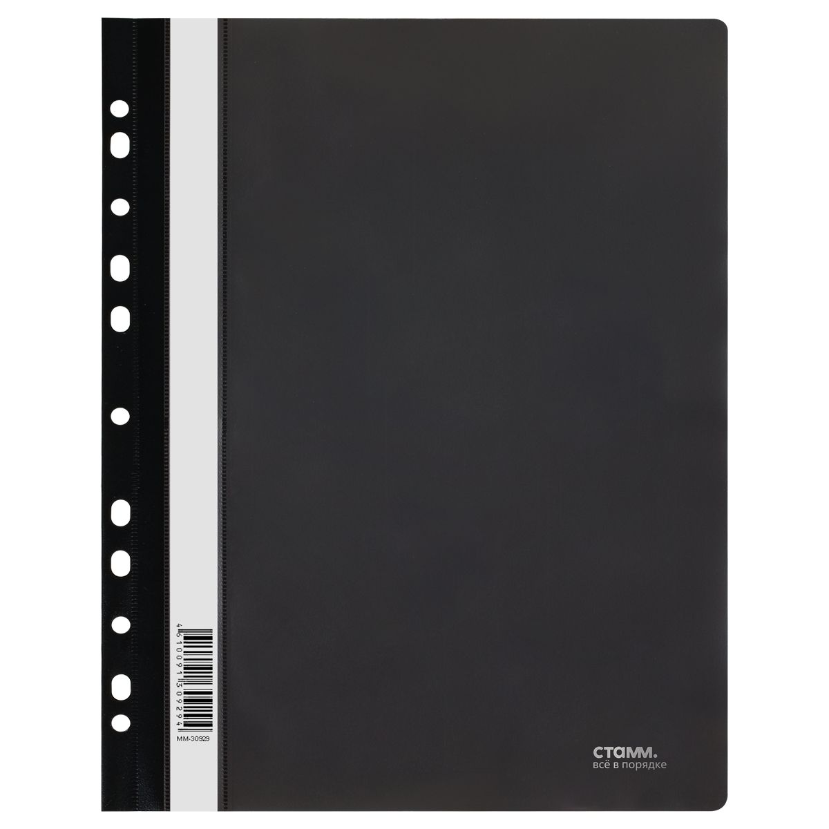 Папка-скоросшиватель пластик. перф. СТАММ А4, 180мкм, черная с прозр. верхом