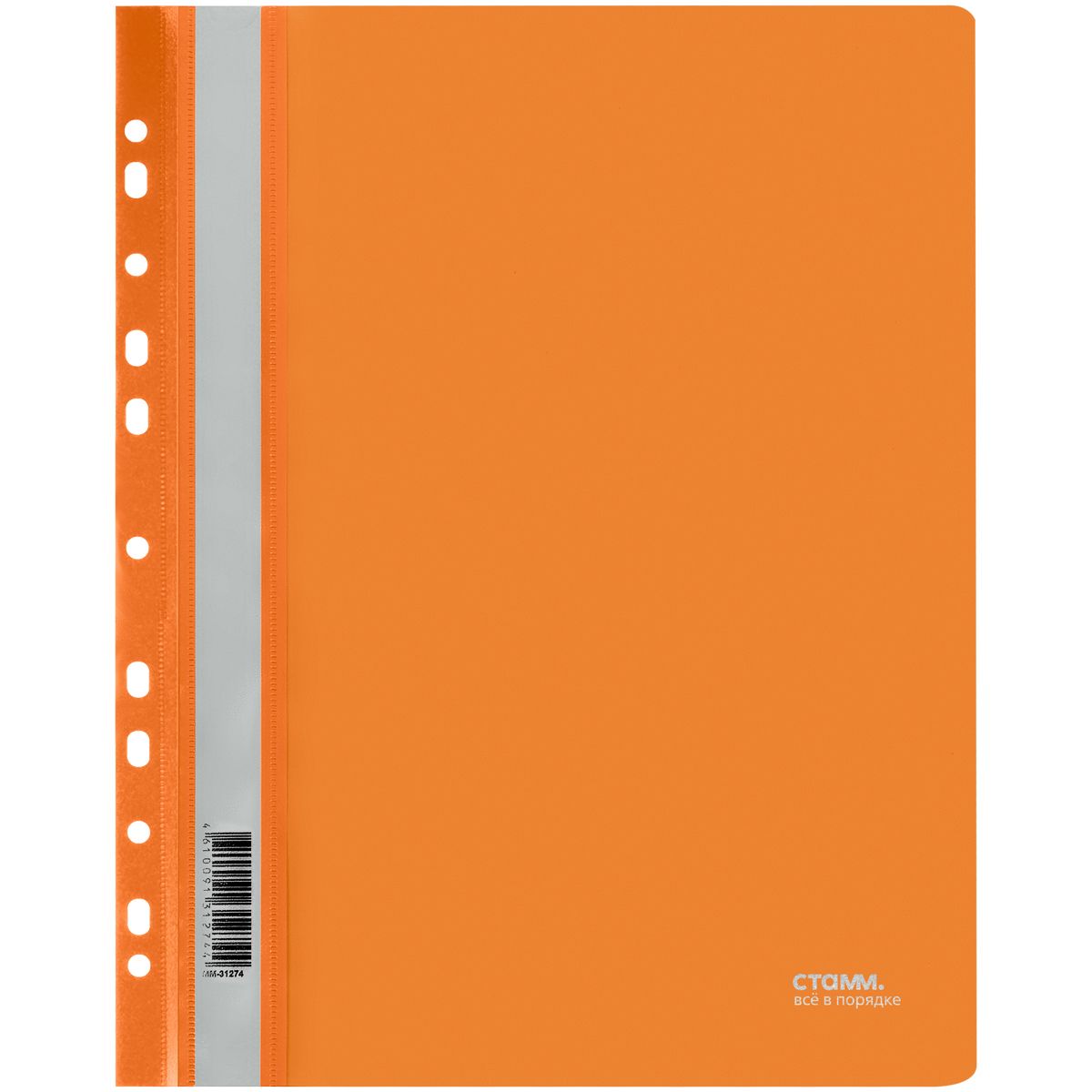 Папка-скоросшиватель пластик. перф. СТАММ А4, 180мкм, оранжевая с прозр. верхом