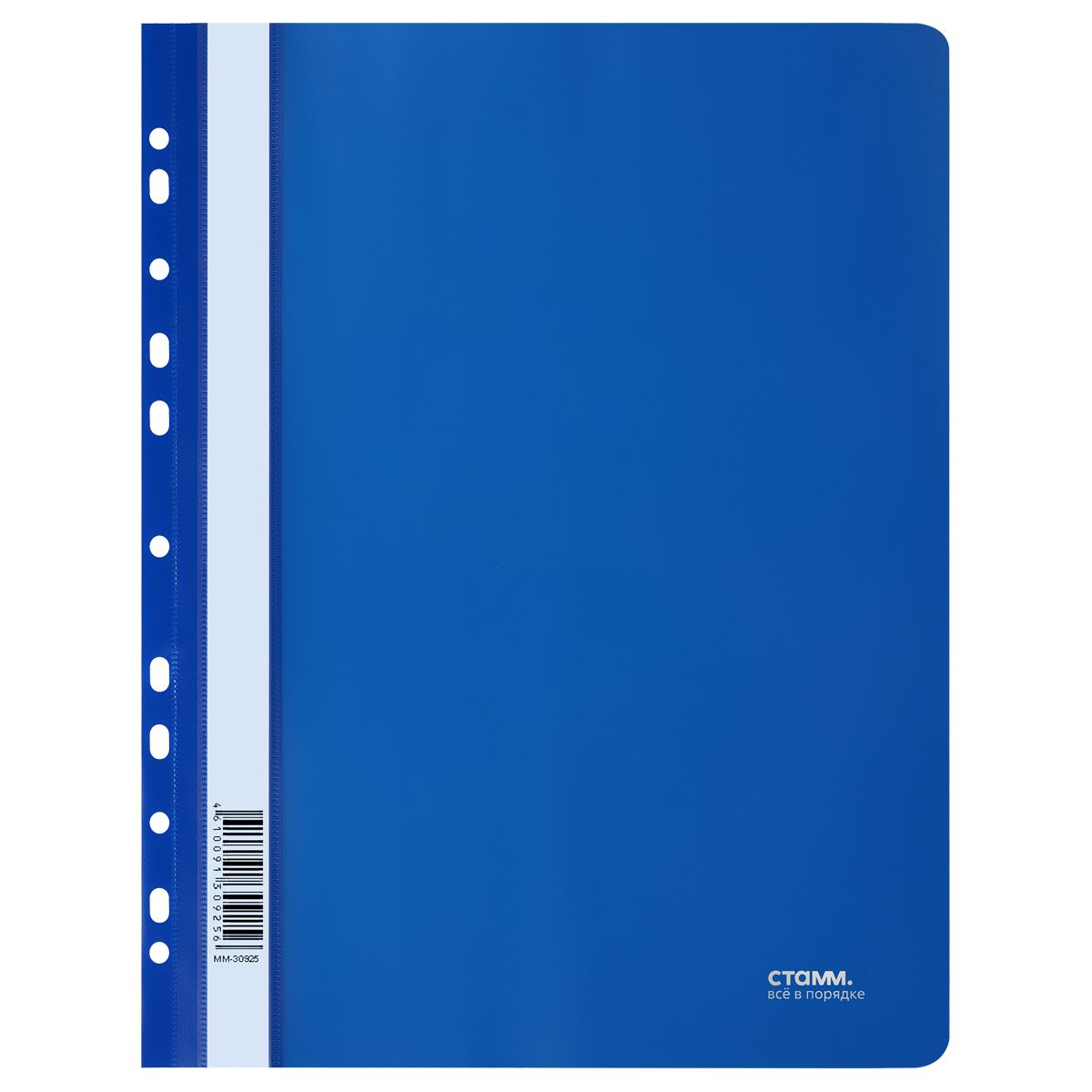 Папка-скоросшиватель пластик. перф. СТАММ А4, 180мкм, синяя с прозр. верхом