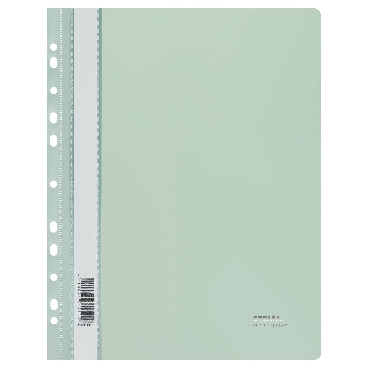 Папка-скоросшиватель пластик. перф. СТАММ "Акцент" А4, 180мкм, эвкалиптовая с прозр. верхом