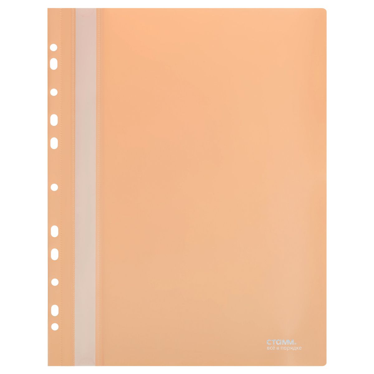 Папка-скоросшиватель пластик. перф. СТАММ "Акцент" А4, 180мкм, персиковая с прозр. верхом