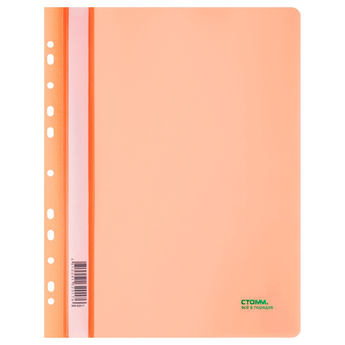 Папка-скоросшиватель пластик. перф. СТАММ "Сияние" А4, 180мкм, оранжевый с прозр. верхом