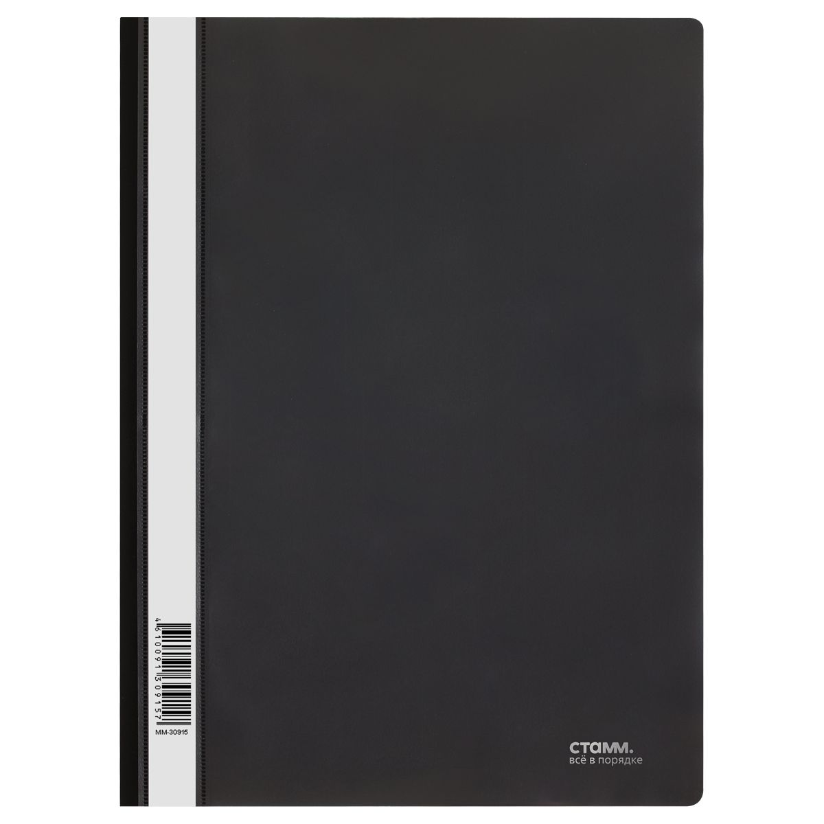 Папка-скоросшиватель пластик. СТАММ А4, 180мкм, черная с прозр. верхом