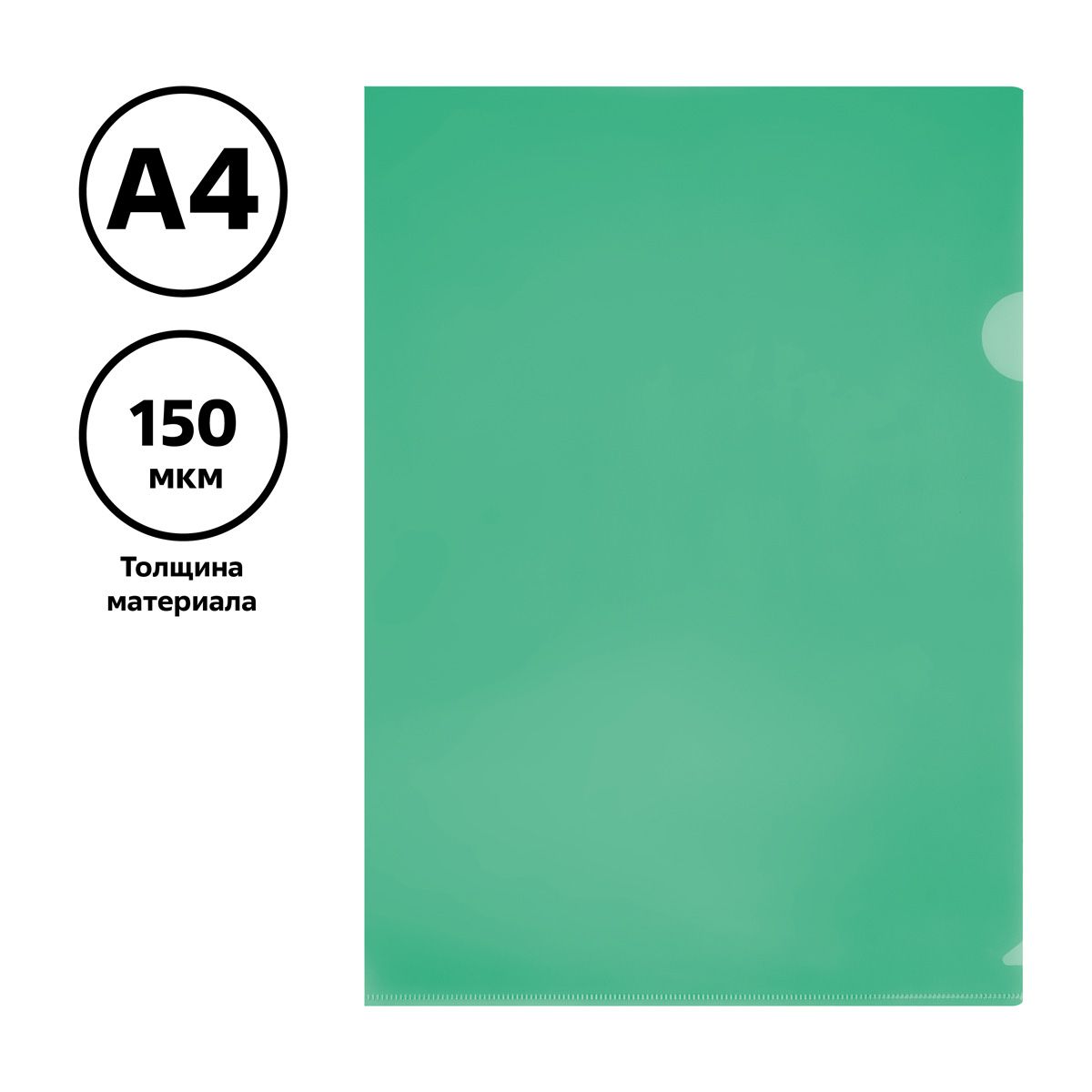 Папка-уголок СТАММ А4, 150мкм, пластик, прозрачная, зеленая
