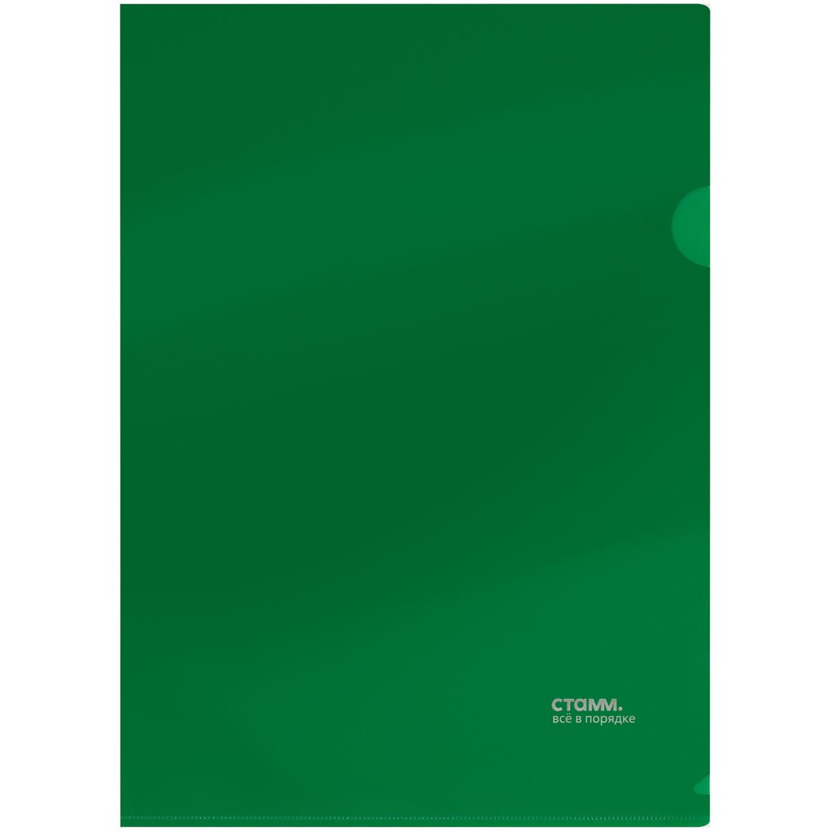 Папка-уголок СТАММ А4, 180мкм, пластик, непрозрачная, зеленая