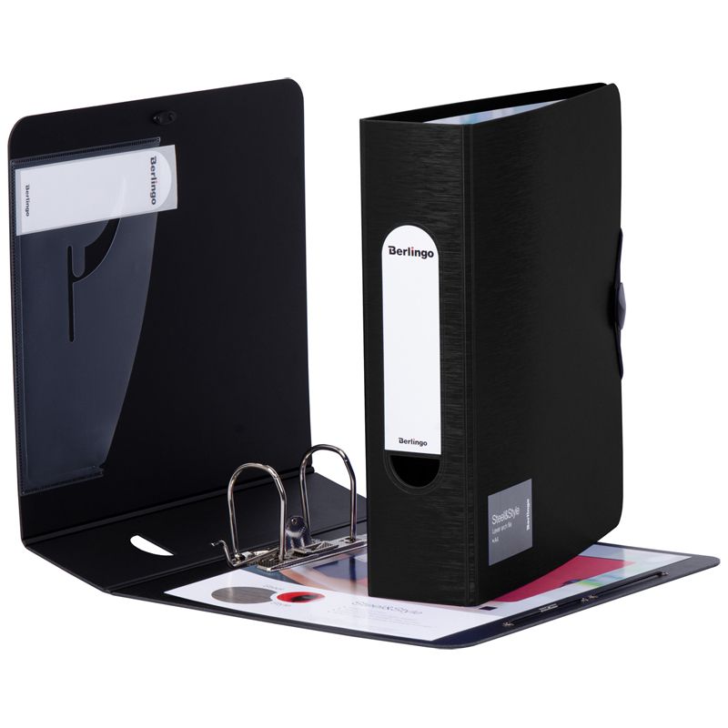Папка-регистратор Berlingo "Steel&Style", 80мм, 2500мкм, пластик (полифом), на резинке, с внутр. карманом, черная