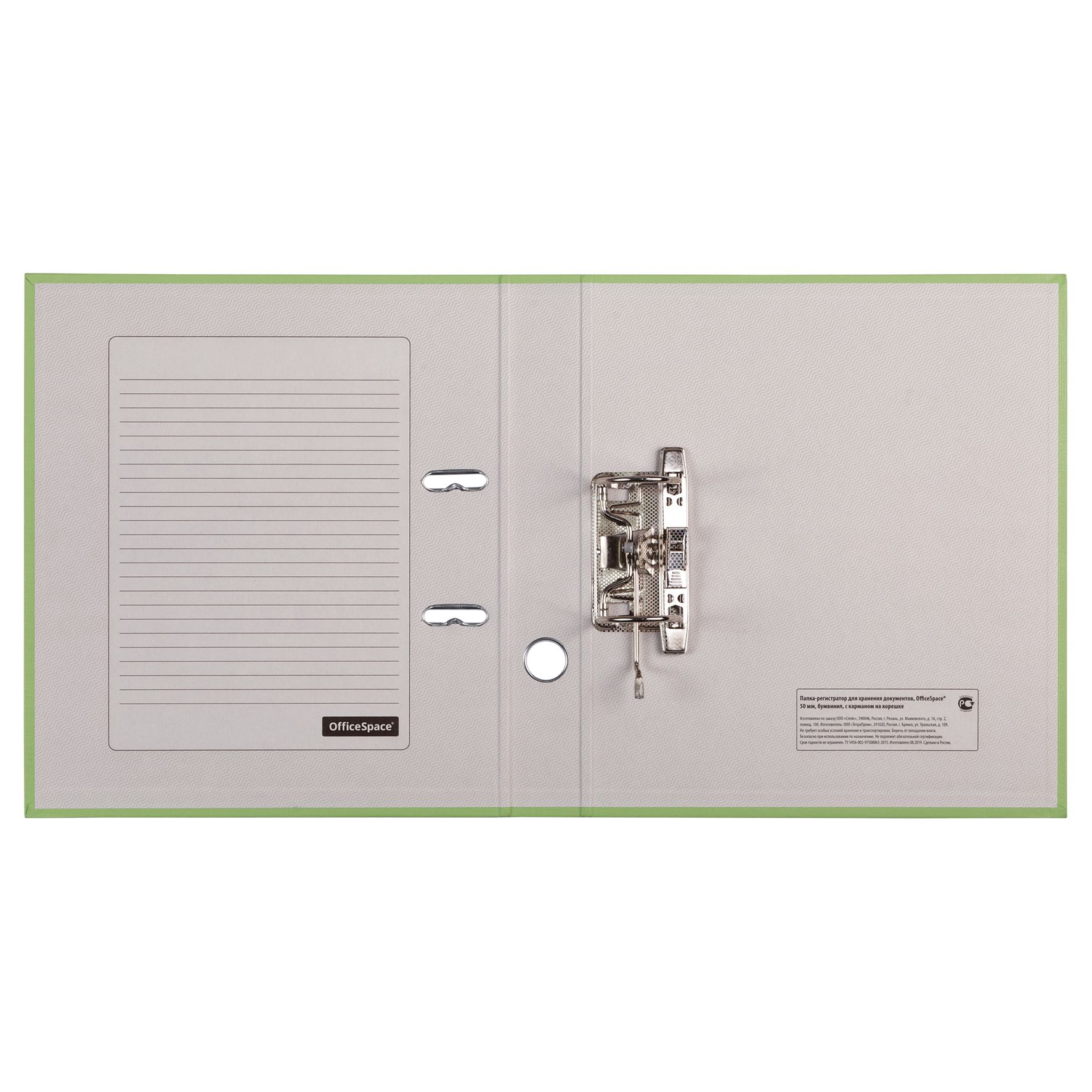 Папка-регистратор OfficeSpace, 50мм, бумвинил, с карманом на корешке, фисташковая