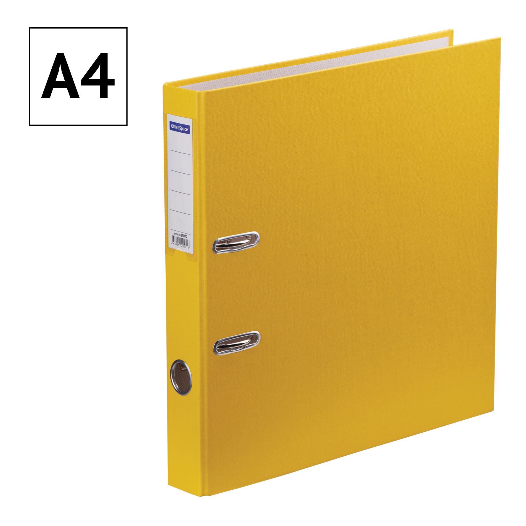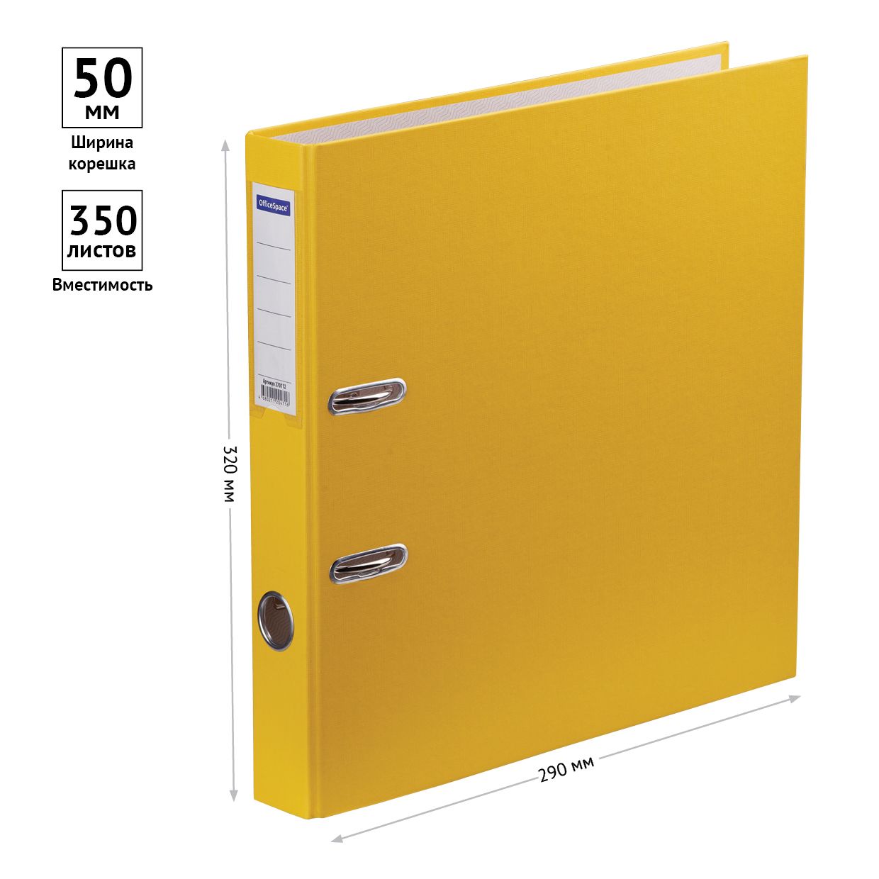 Папка-регистратор OfficeSpace, 50мм, бумвинил, с карманом на корешке, желтая