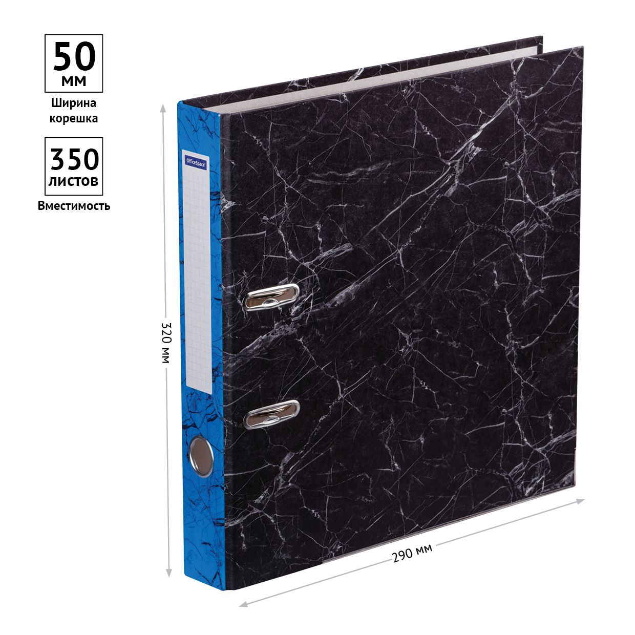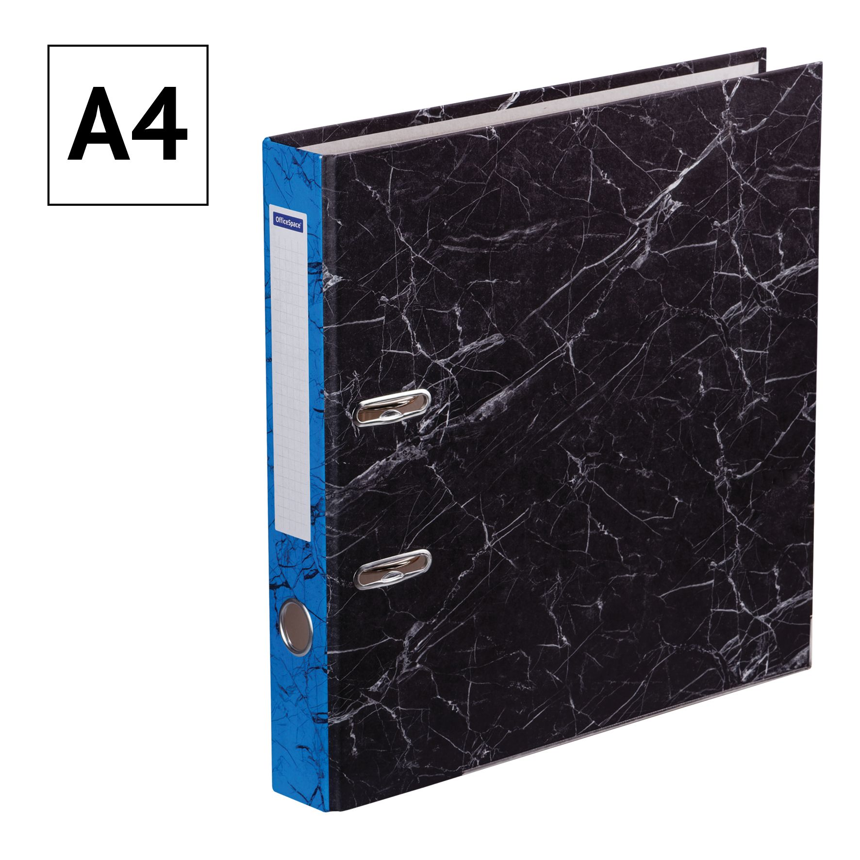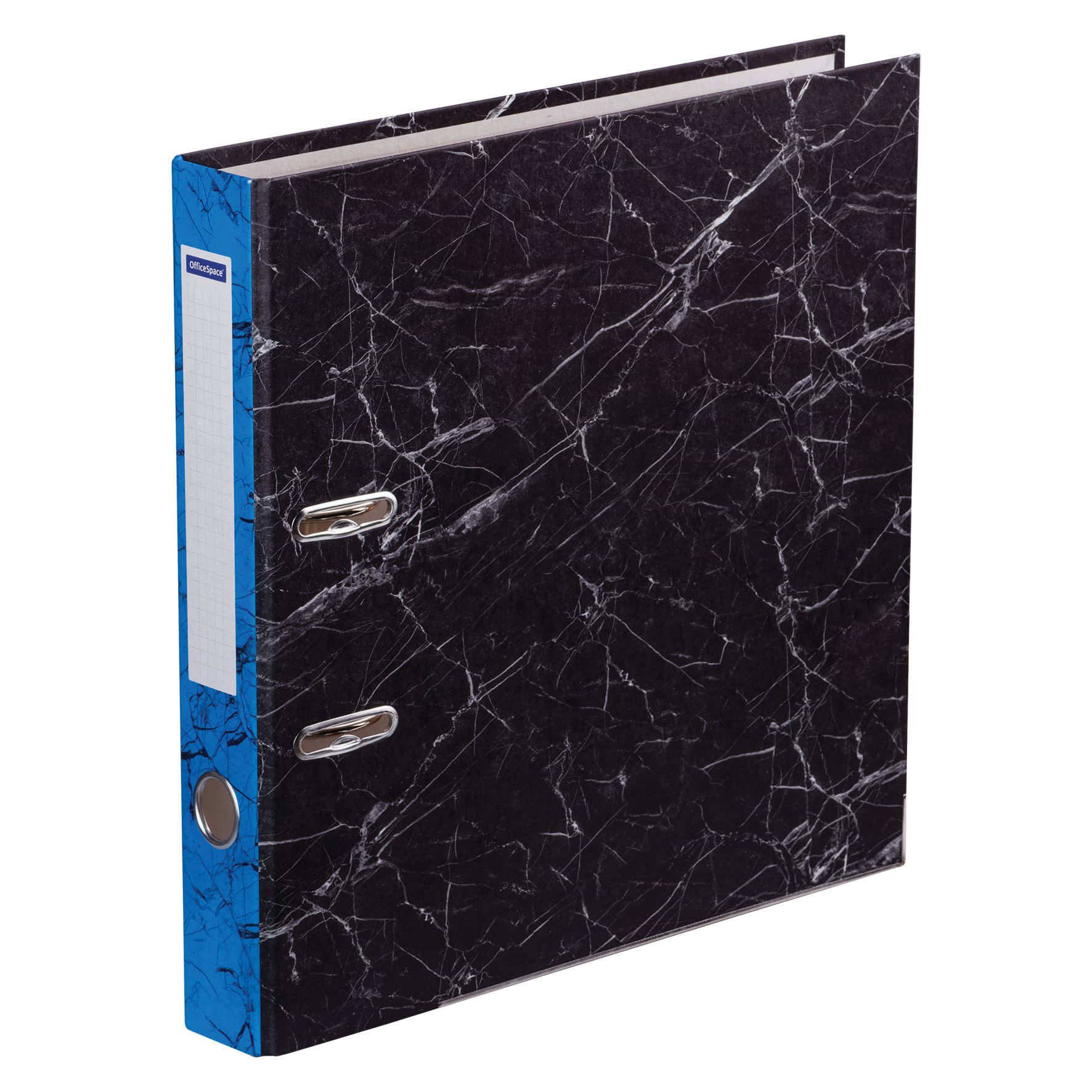 Папка-регистратор OfficeSpace 50мм, мрамор, черная, синий корешок, нижний метал. кант