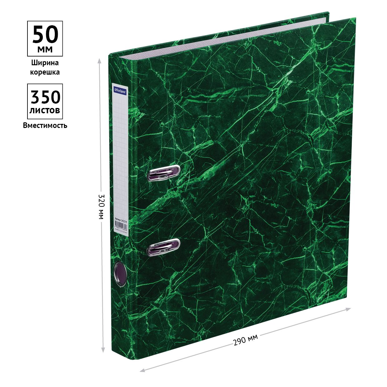 Папка-регистратор OfficeSpace 50мм, мрамор, зеленая