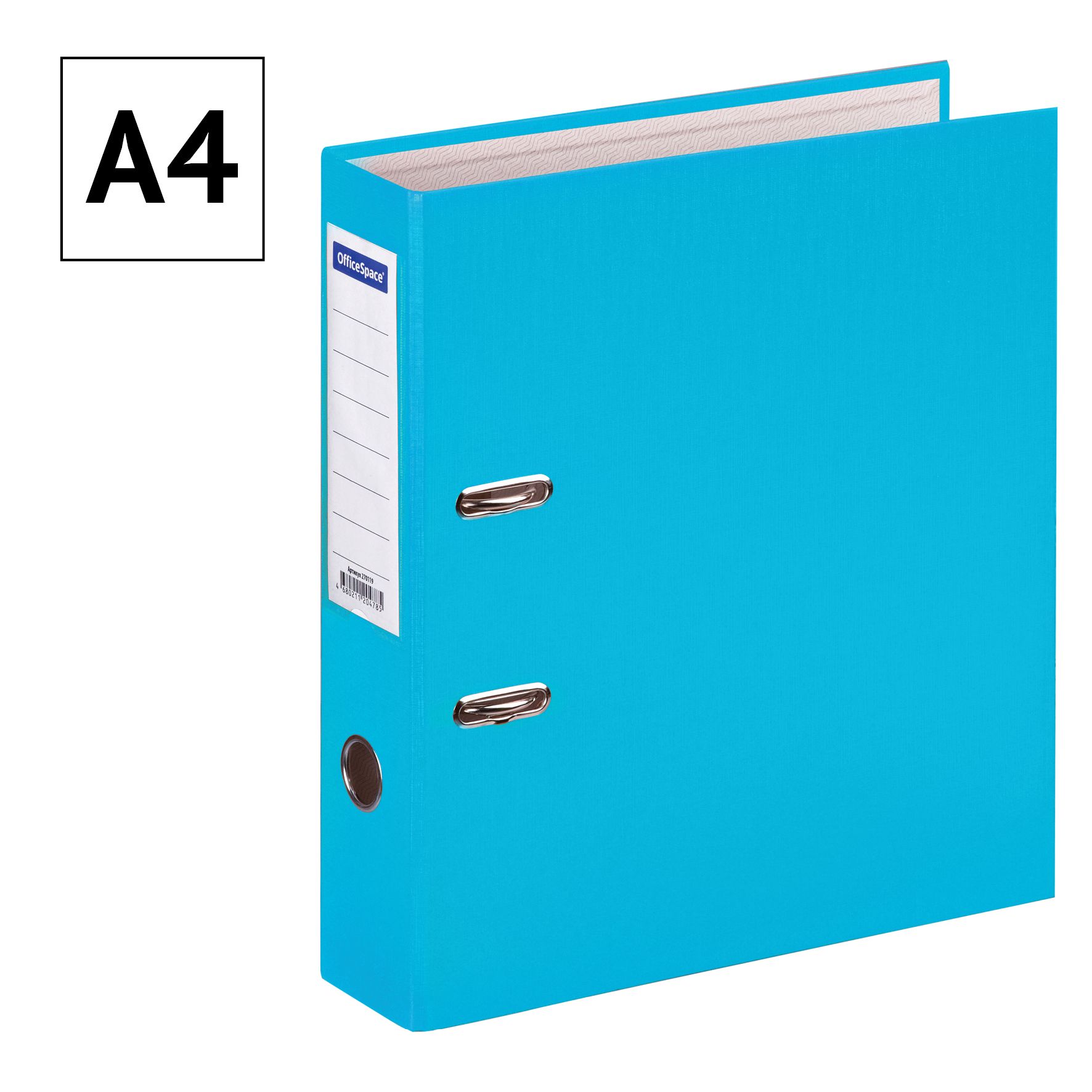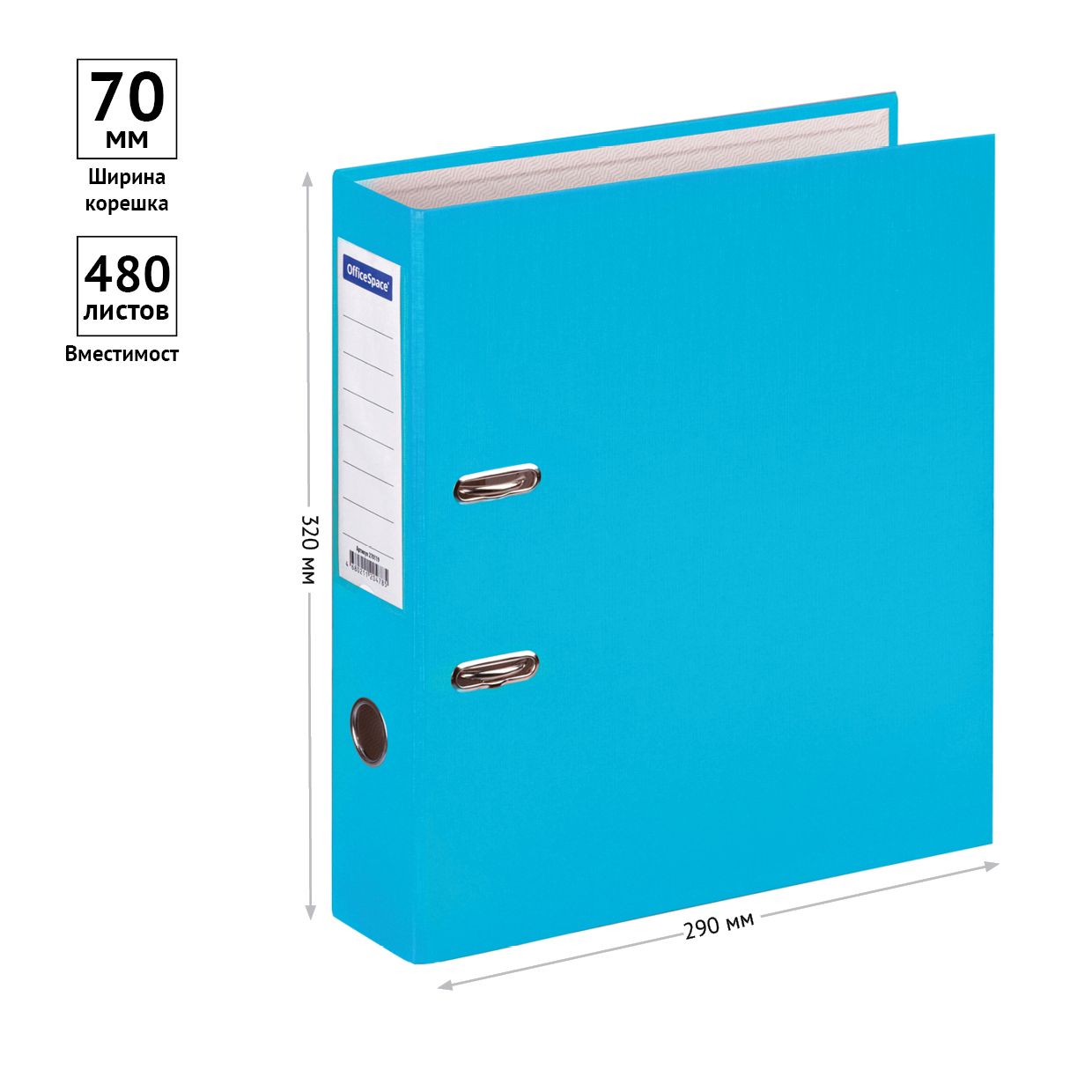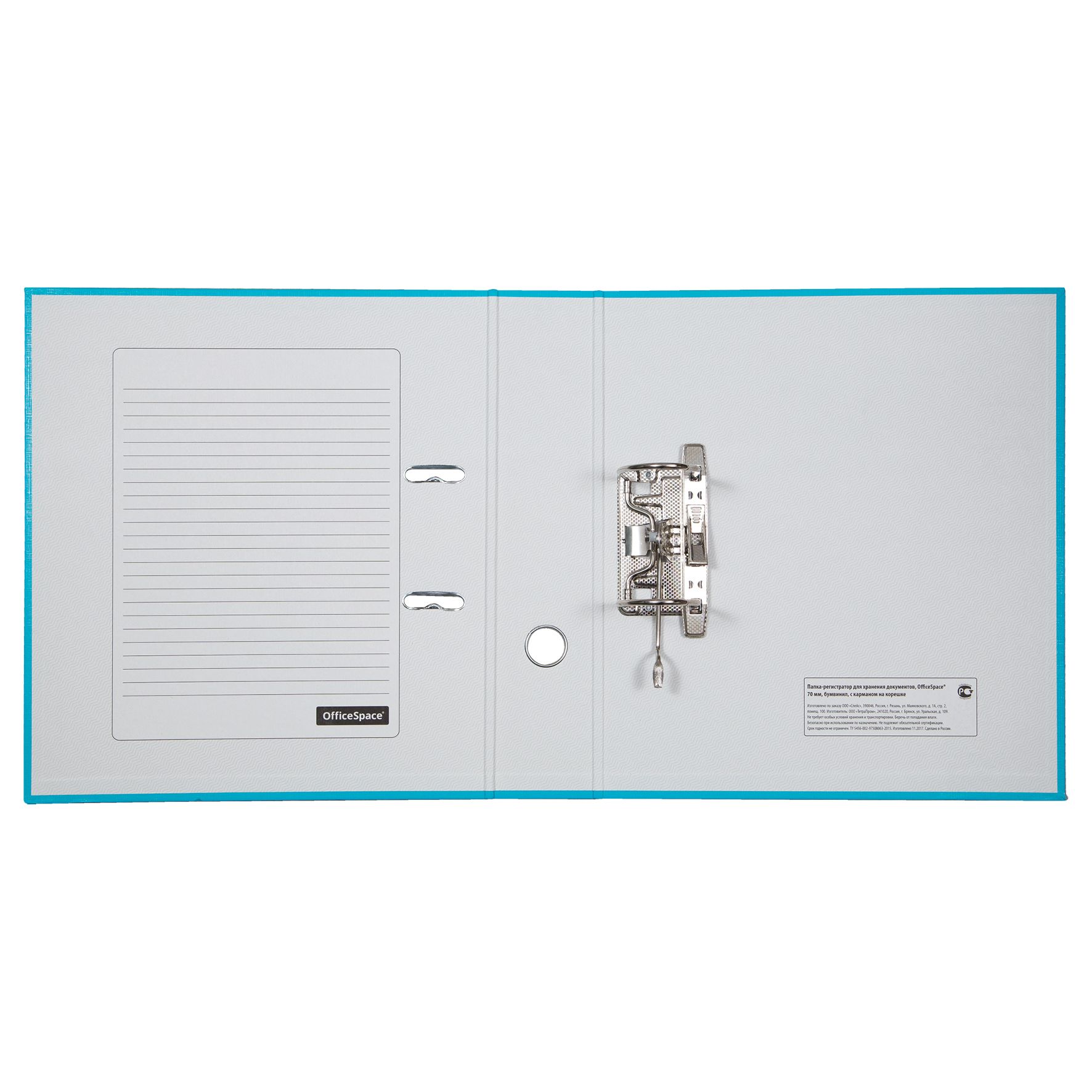Папка-регистратор OfficeSpace, 70мм, бумвинил, с карманом на корешке, бирюзовая