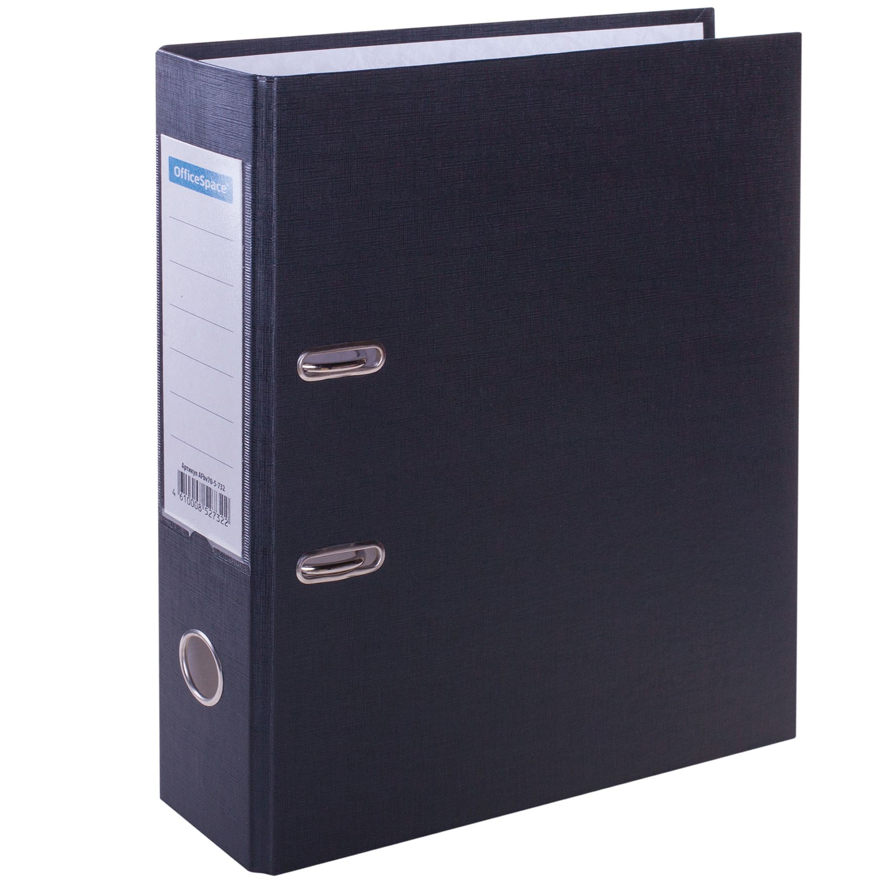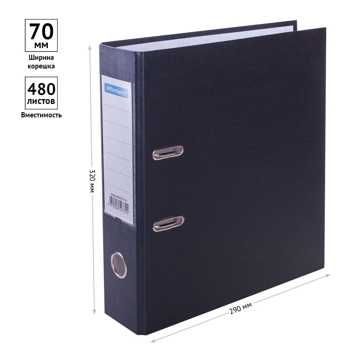 Папка-регистратор OfficeSpace, 70мм, бумвинил, с карманом на корешке, черная