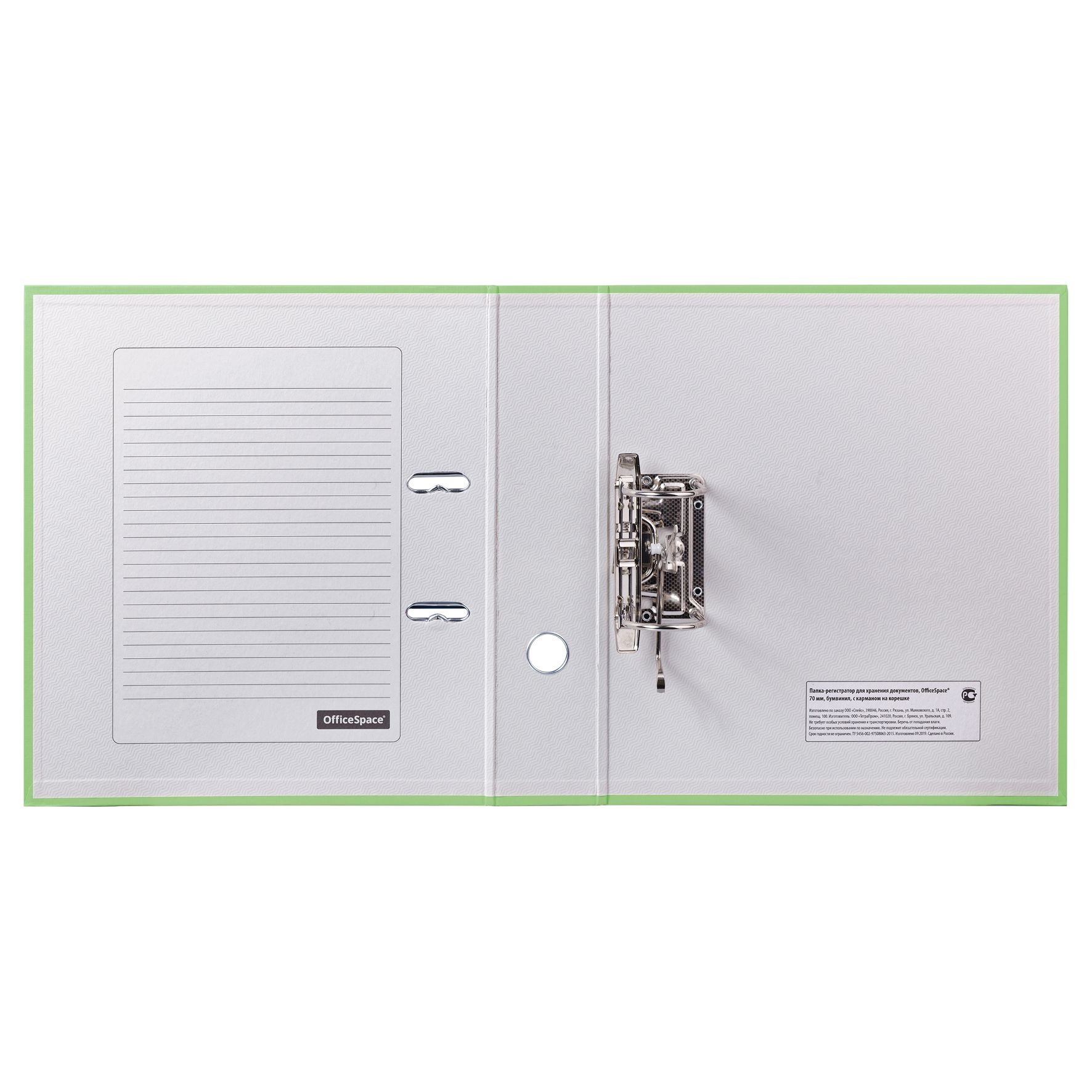 Папка-регистратор OfficeSpace, 70мм, бумвинил, с карманом на корешке, фисташковая