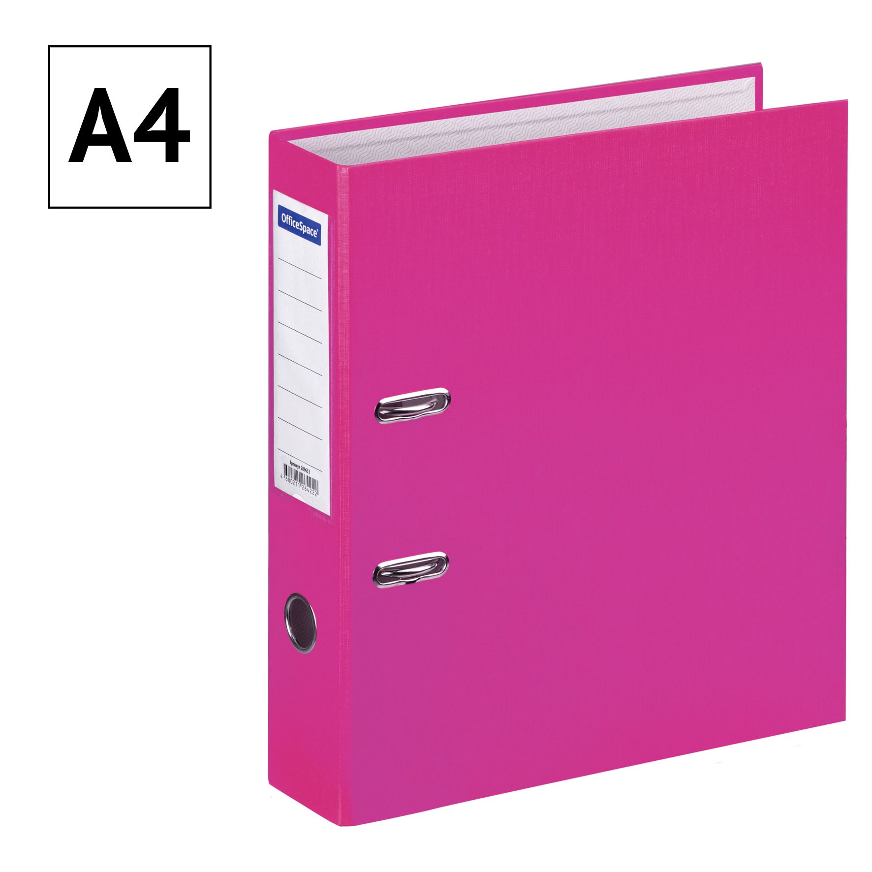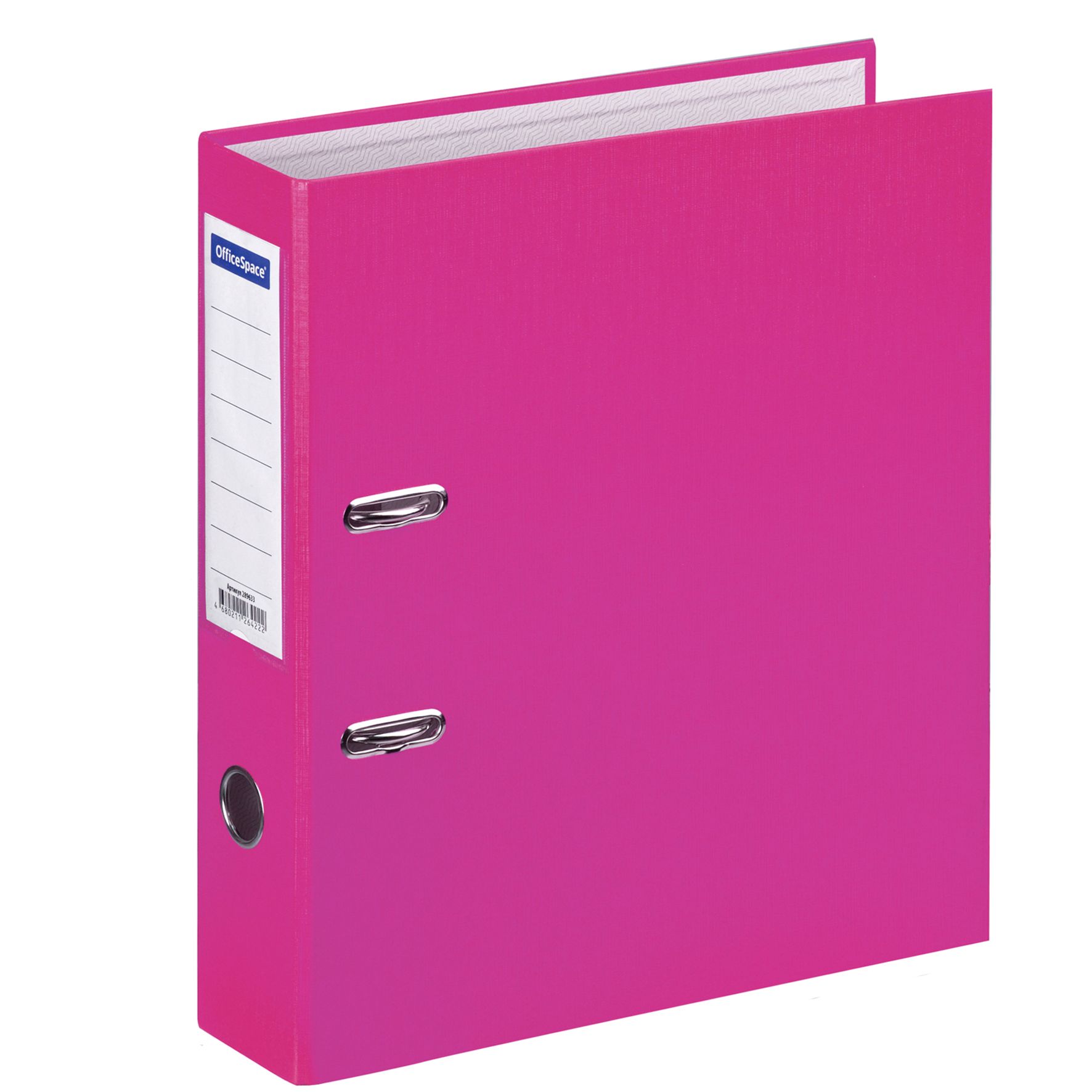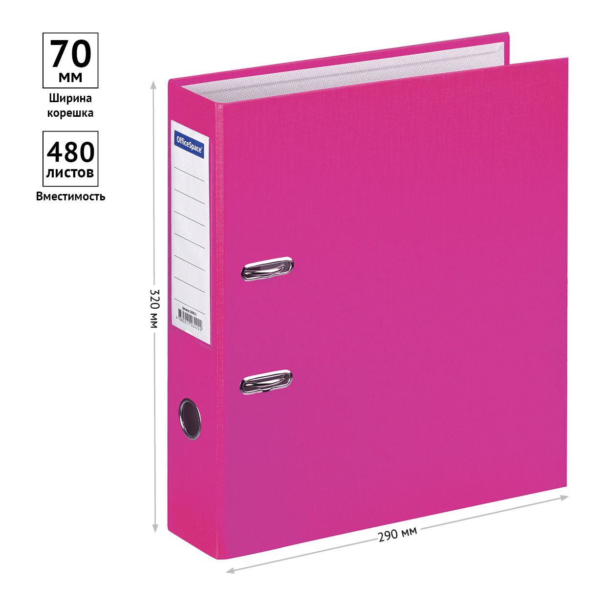 Папка-регистратор OfficeSpace, 70мм, бумвинил, с карманом на корешке, розовая