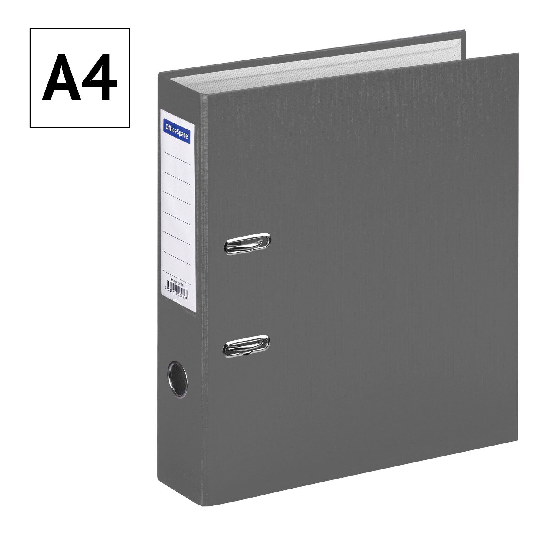 Папка-регистратор OfficeSpace, 70мм, бумвинил, с карманом на корешке, серая