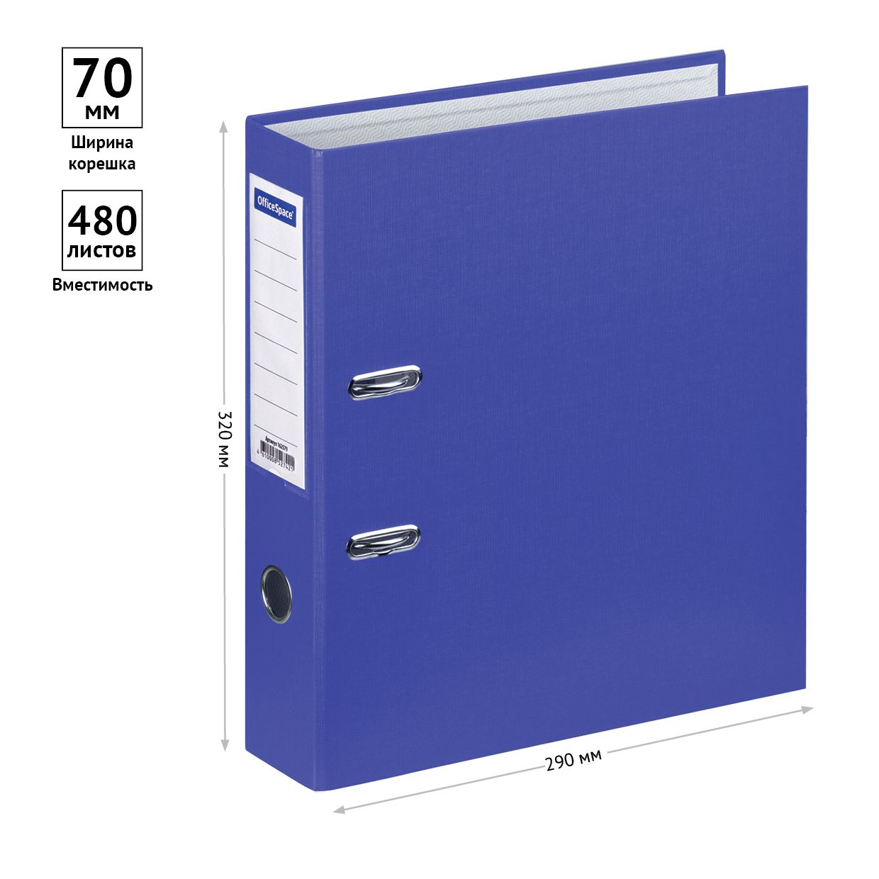Папка-регистратор OfficeSpace, 70мм, бумвинил, с карманом на корешке, синяя