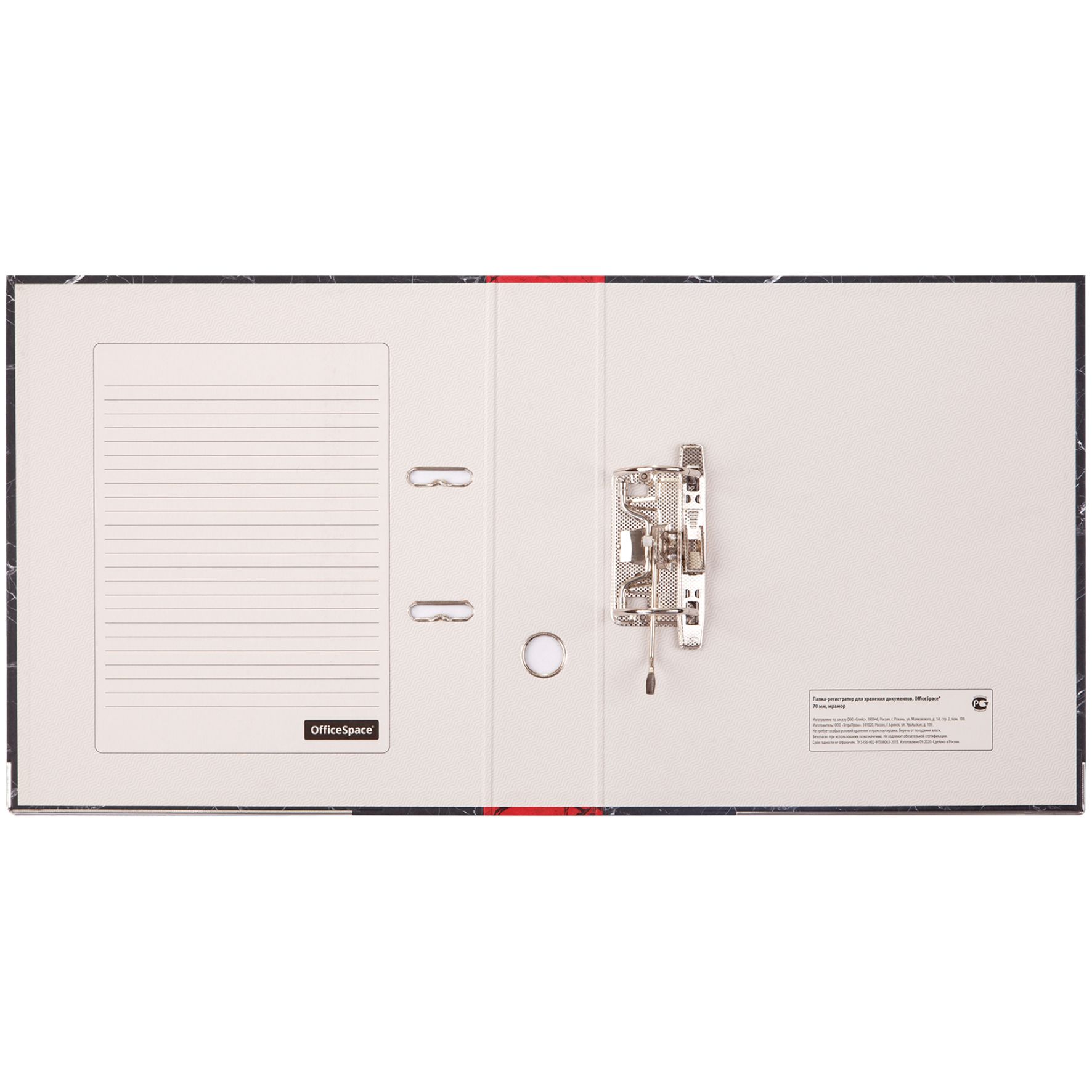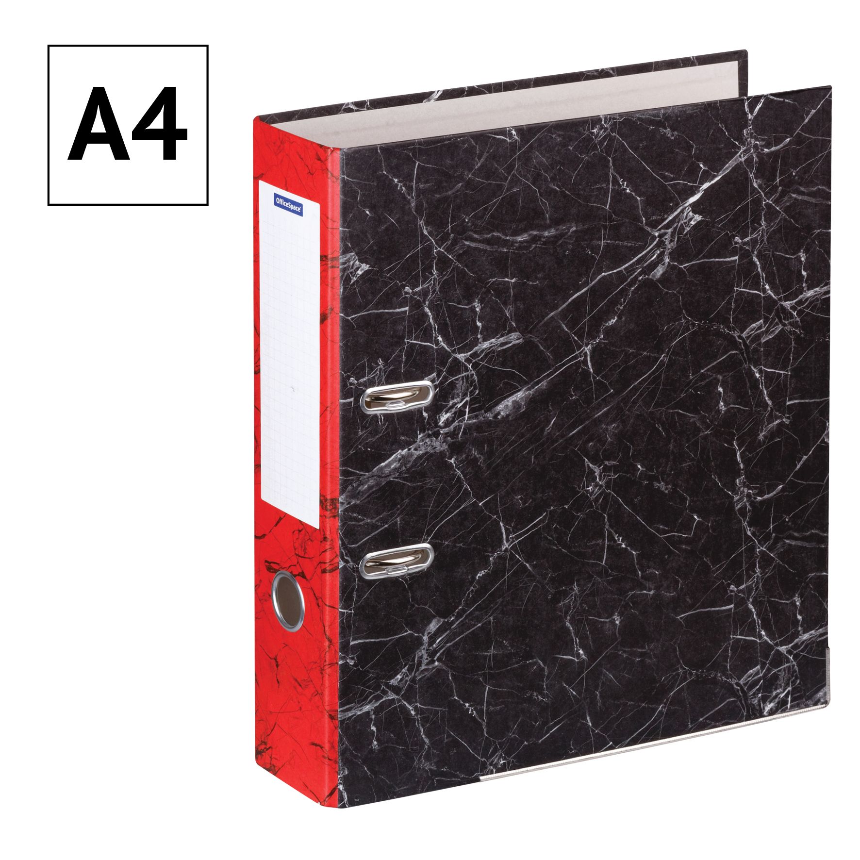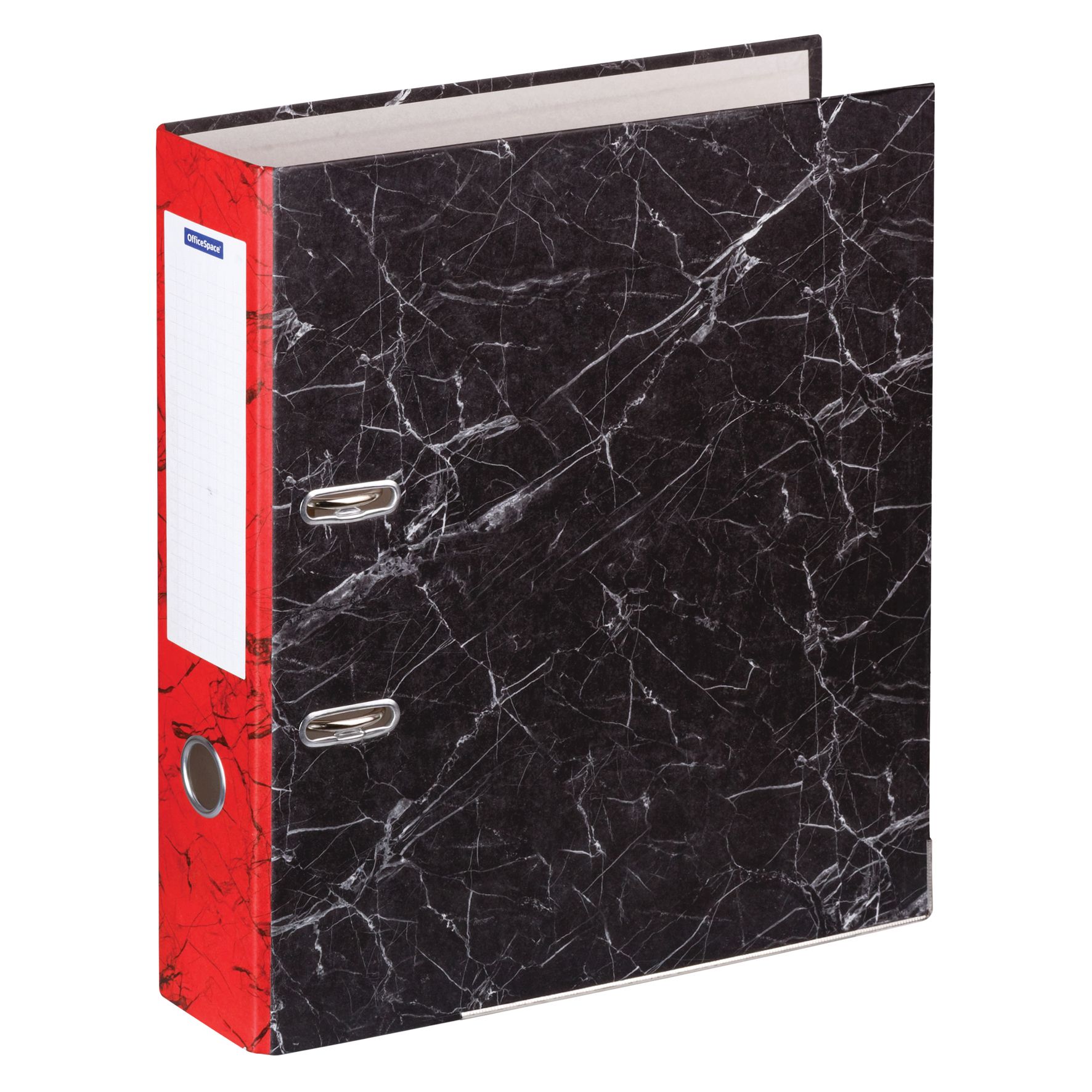 Папка-регистратор OfficeSpace 70мм, мрамор, черная, красный корешок, нижний метал. кант