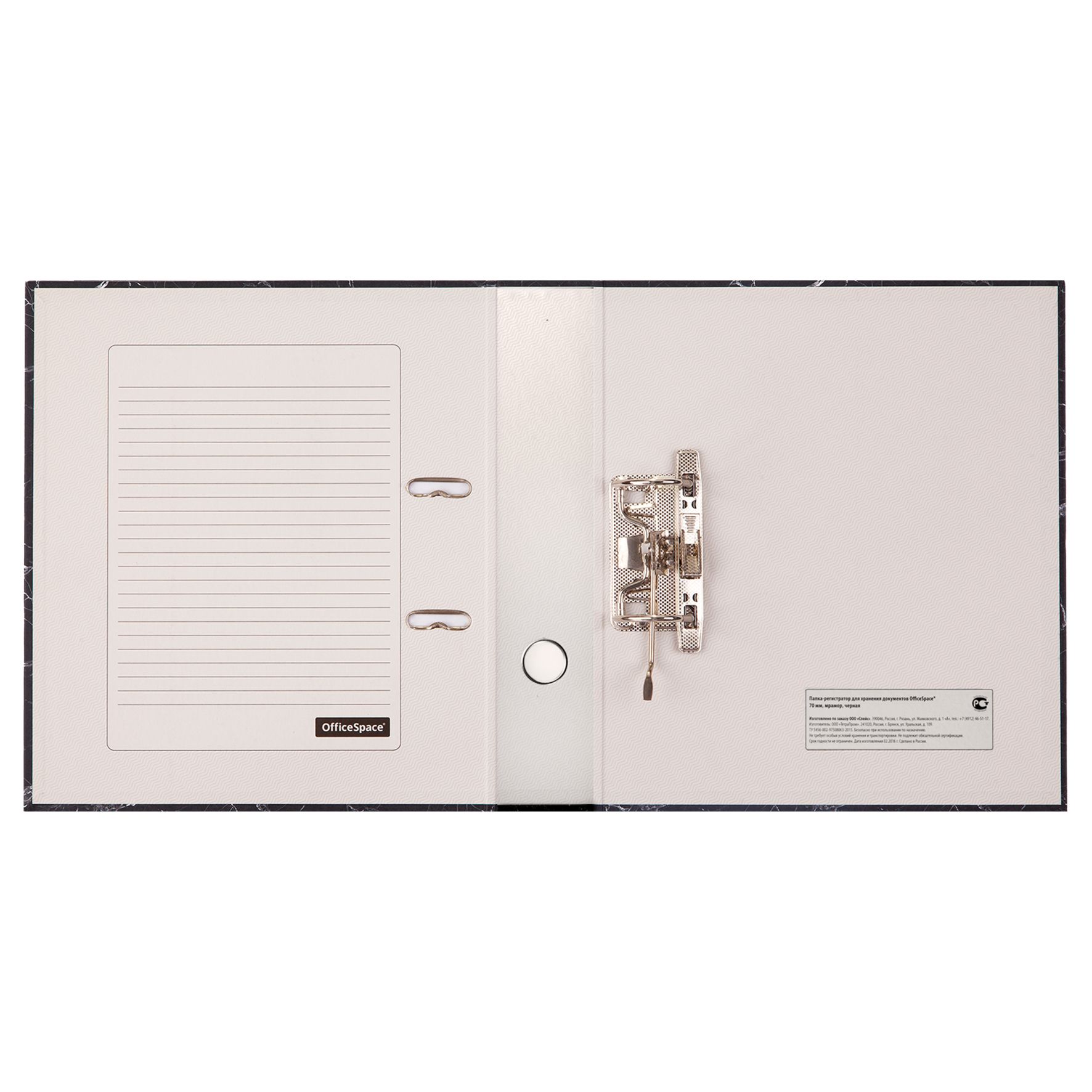 Папка-регистратор OfficeSpace 70мм, мрамор, черная