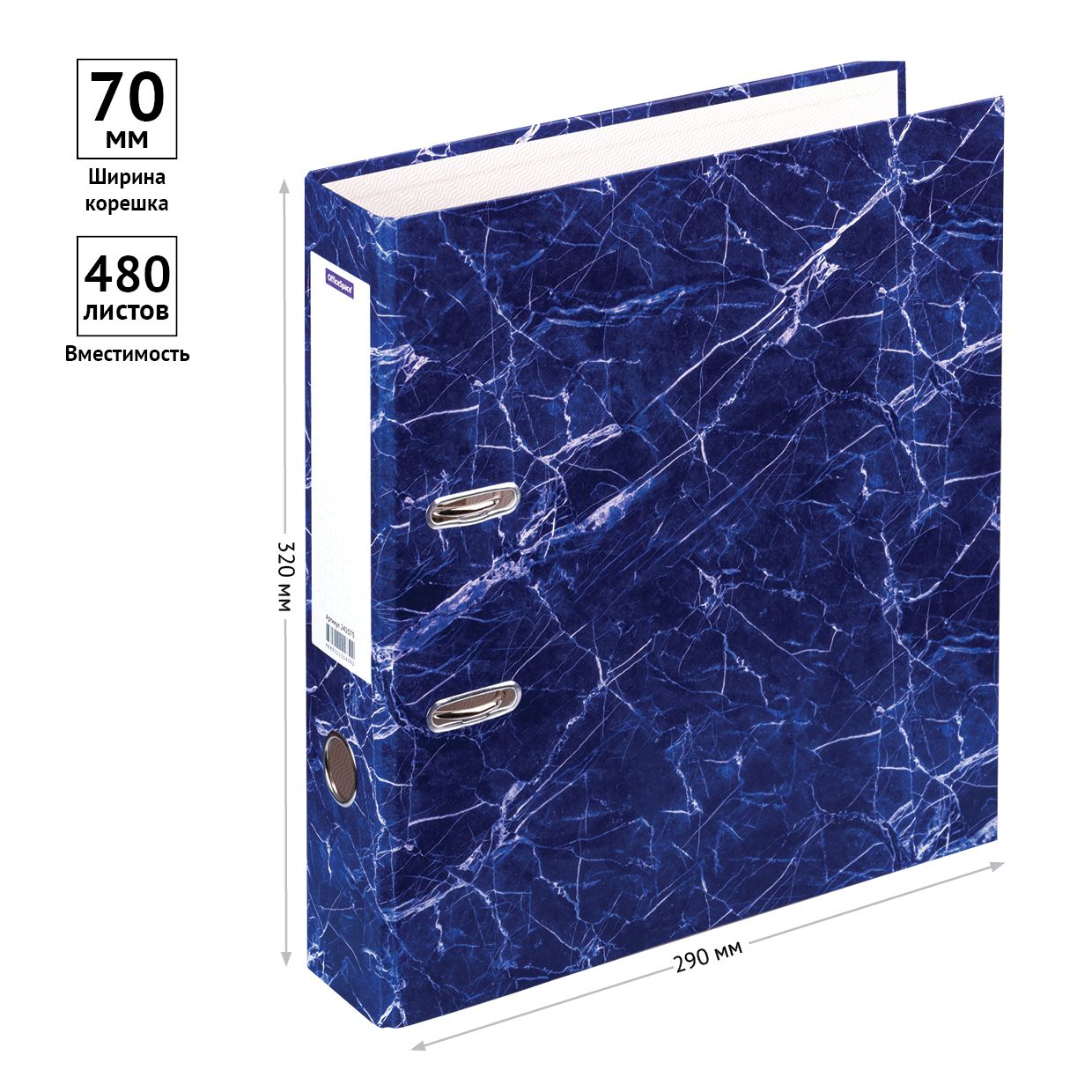 Папка-регистратор OfficeSpace 70мм, мрамор, синяя