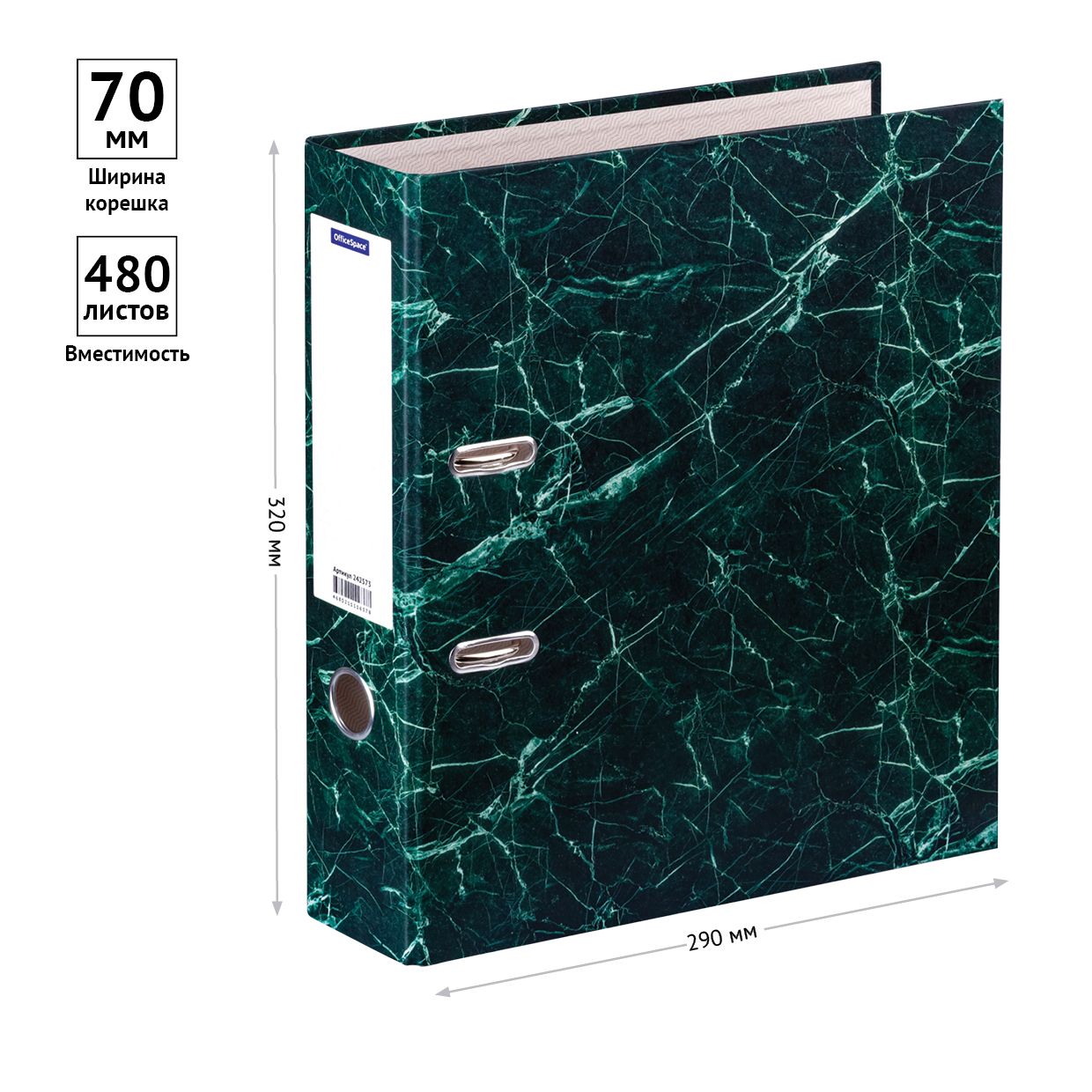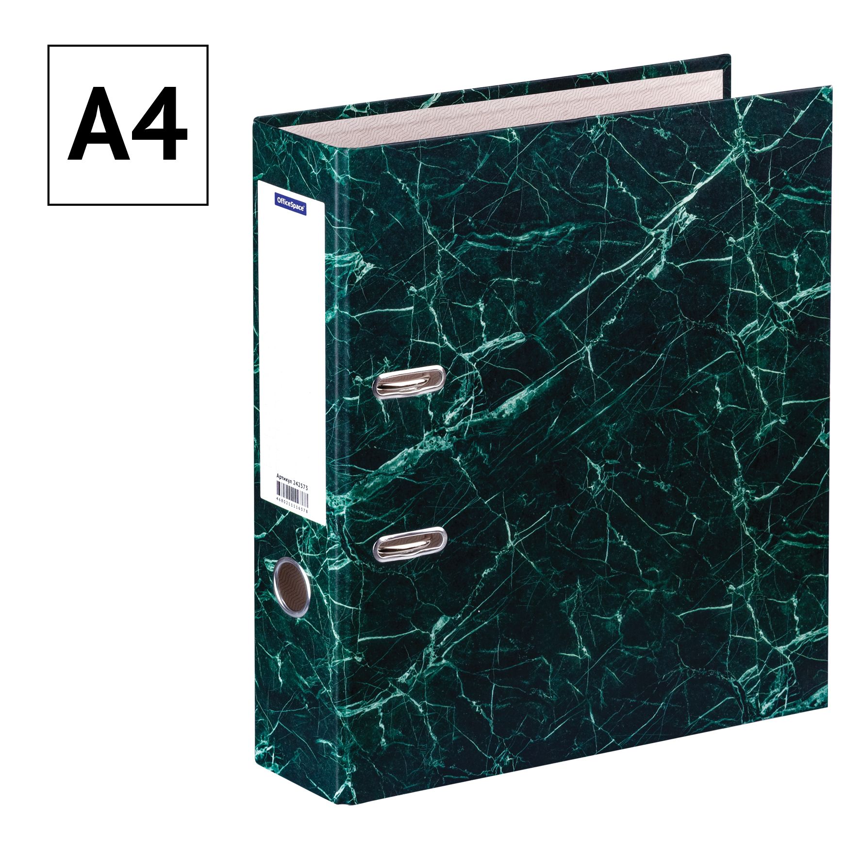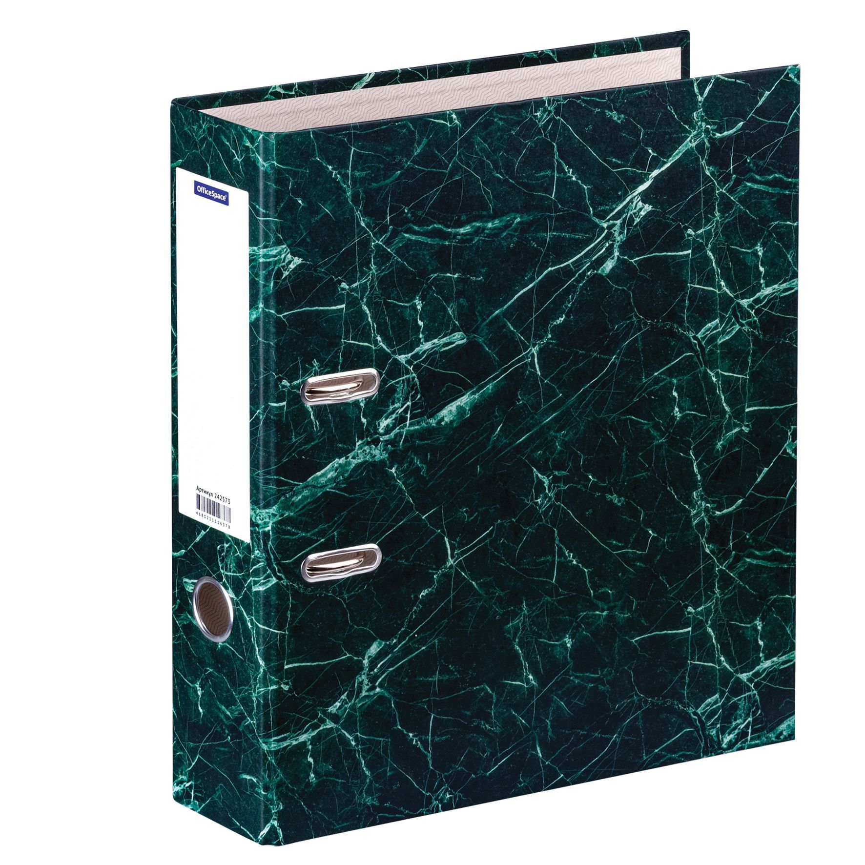 Папка-регистратор OfficeSpace 70мм, мрамор, зеленая