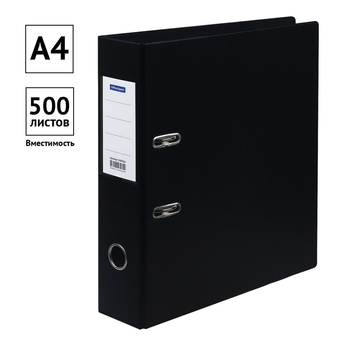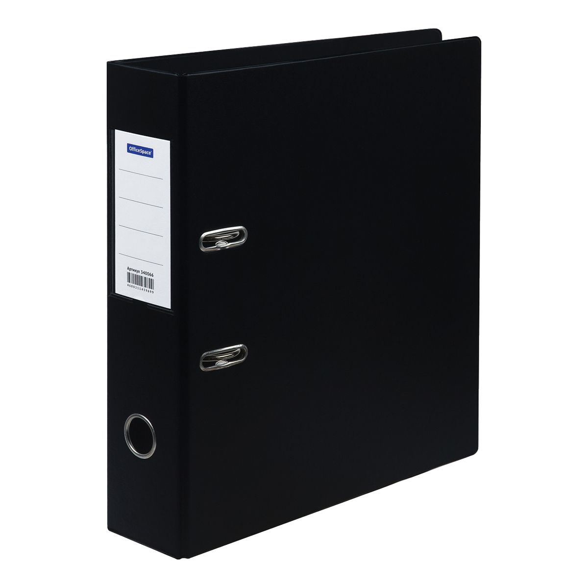 Папка-регистратор OfficeSpace, 70мм, ПВХ, с карманом на корешке, черная