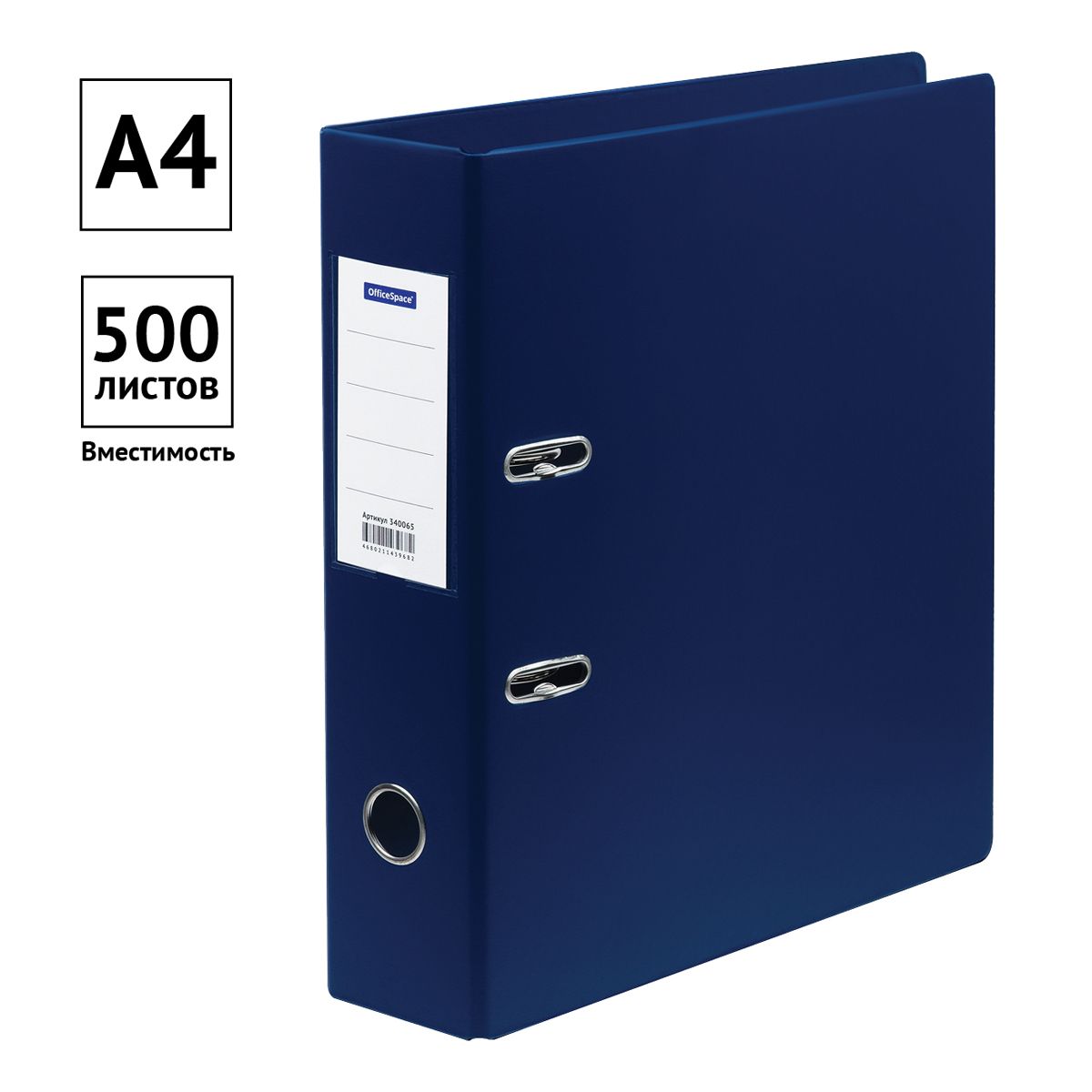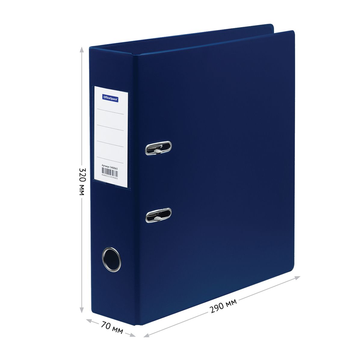 Папка-регистратор OfficeSpace, 70мм, ПВХ, с карманом на корешке, синяя