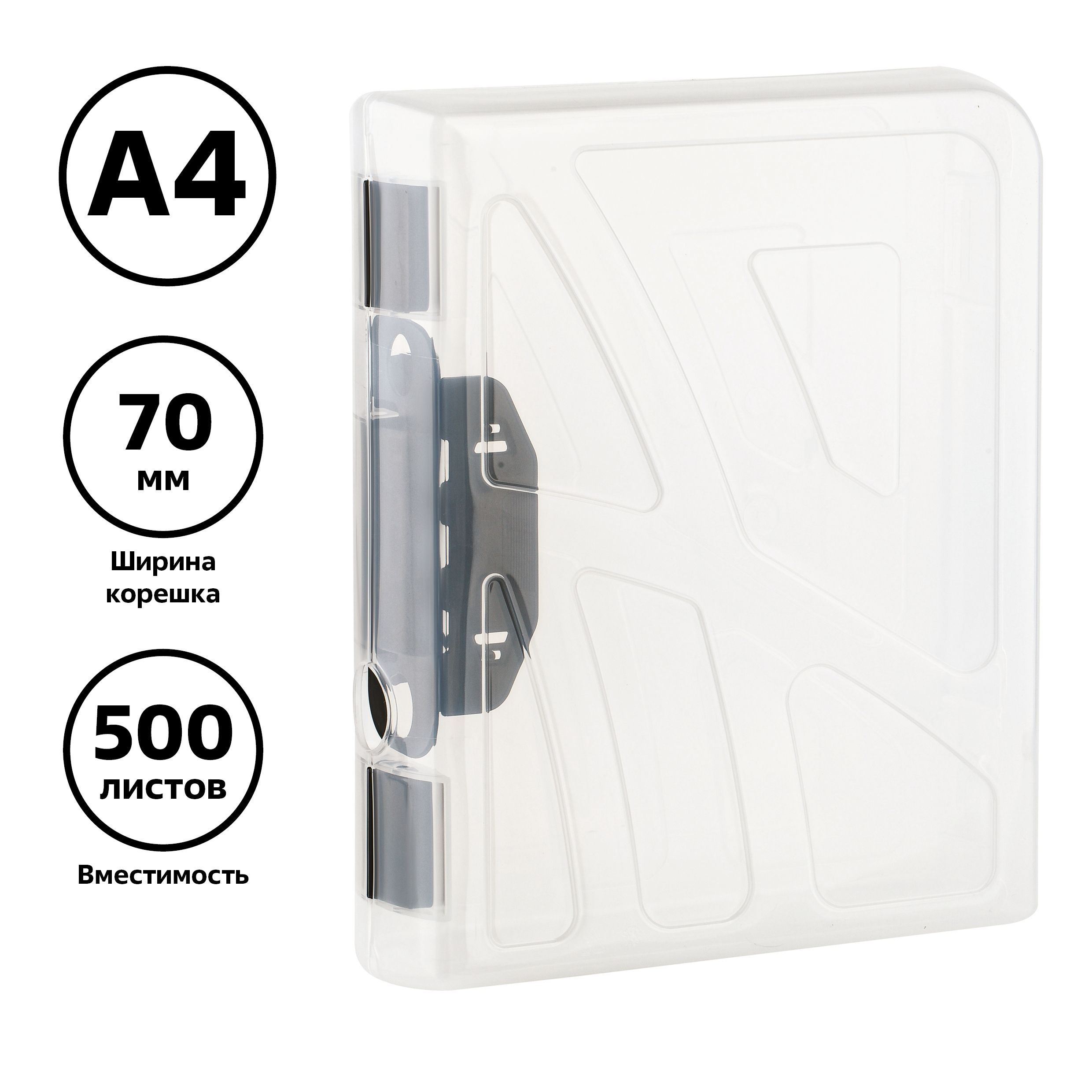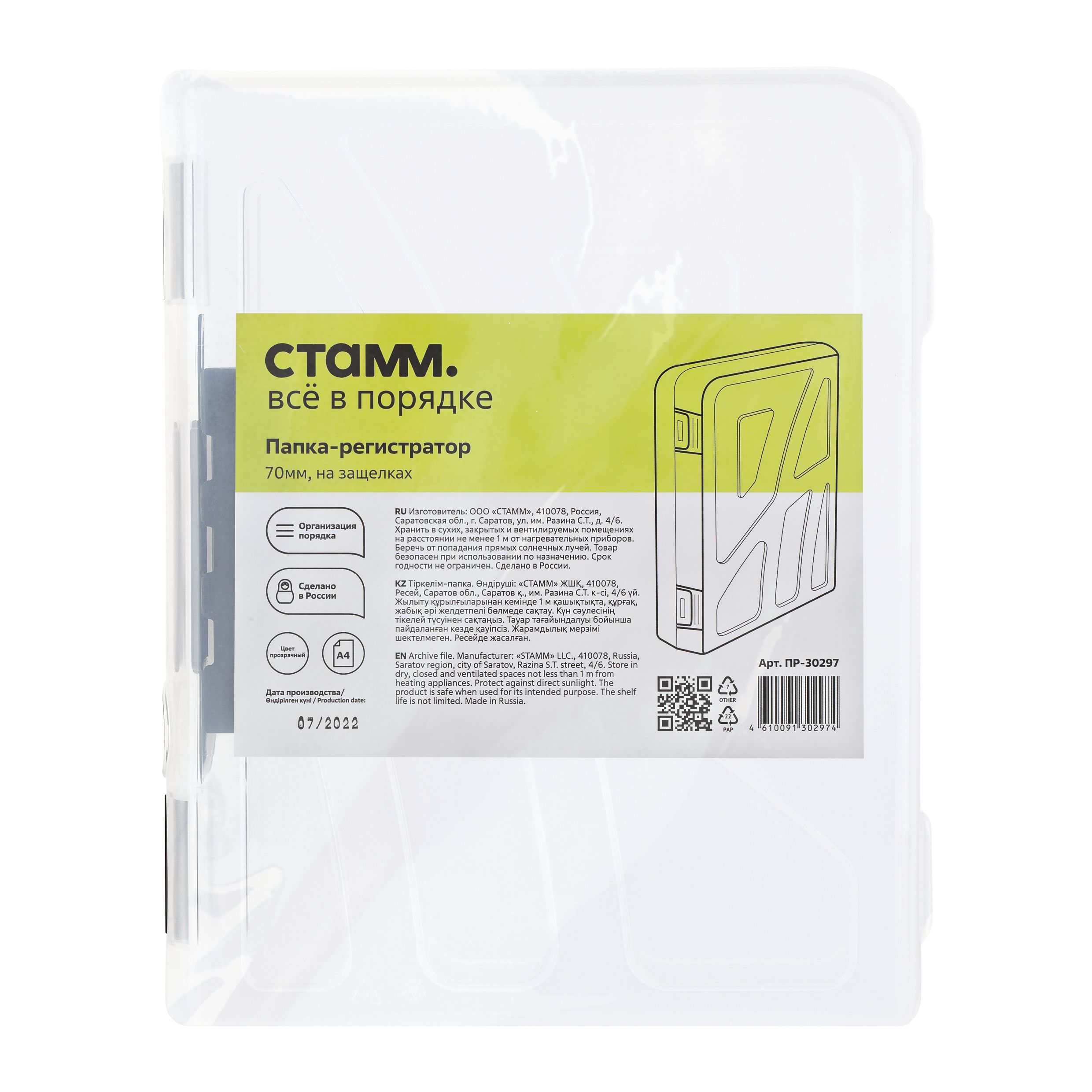 Папка-регистратор СТАММ, 70мм, пластик., на защелках, прозрачная