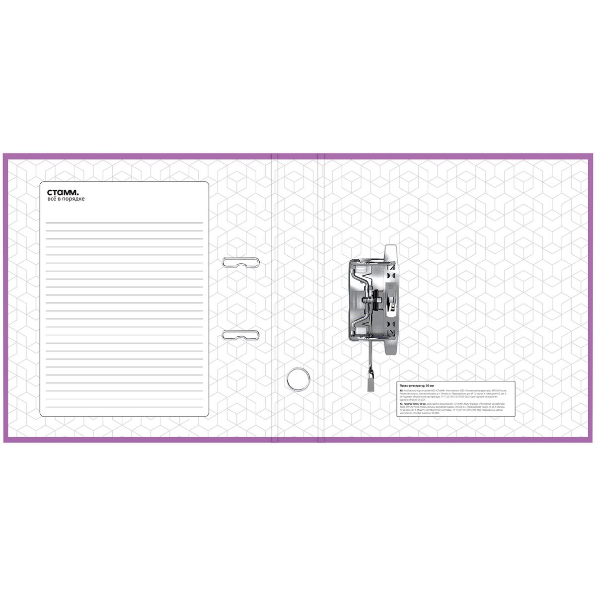 Папка-регистратор СТАММ "Стандарт", 50мм, бумвинил, с карманом на корешке, сиреневая