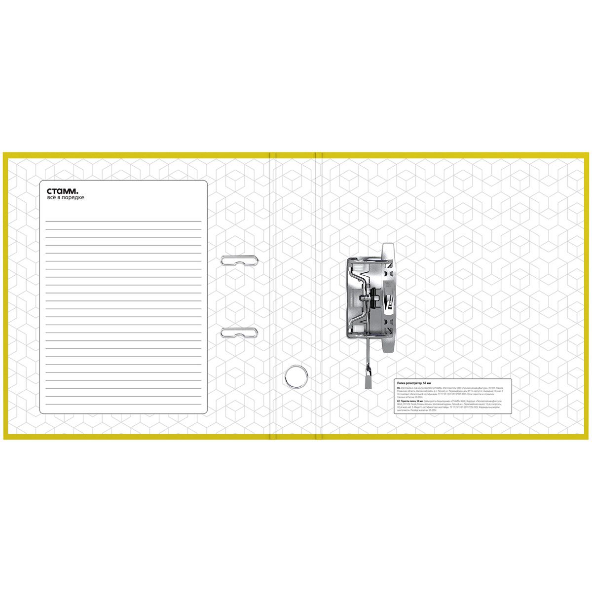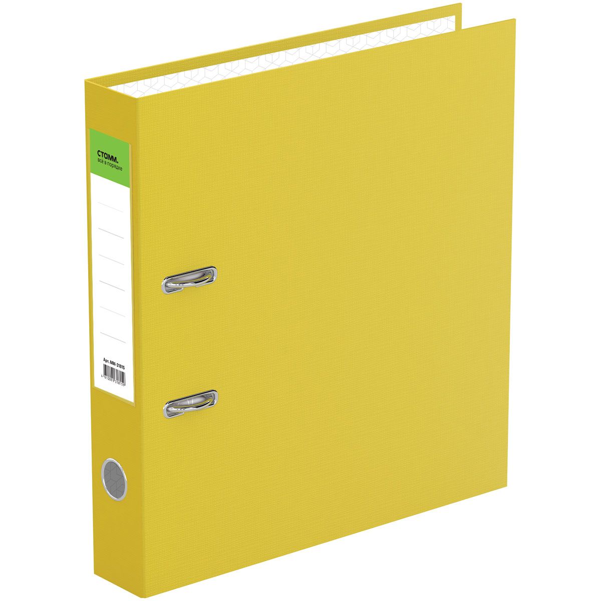 Папка-регистратор СТАММ "Стандарт", 50мм, бумвинил, с карманом на корешке, желтая