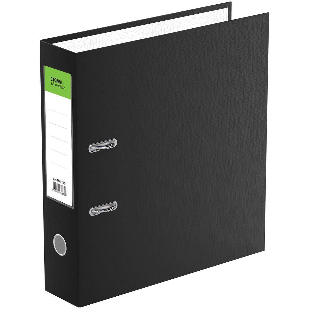 Папка-регистратор СТАММ "Стандарт", 70мм, бумвинил, с карманом на корешке, черная