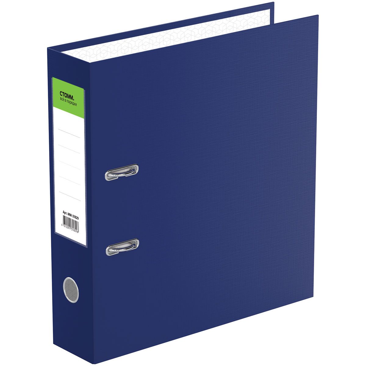 Папка-регистратор СТАММ "Стандарт", 70мм, бумвинил, с карманом на корешке, синяя