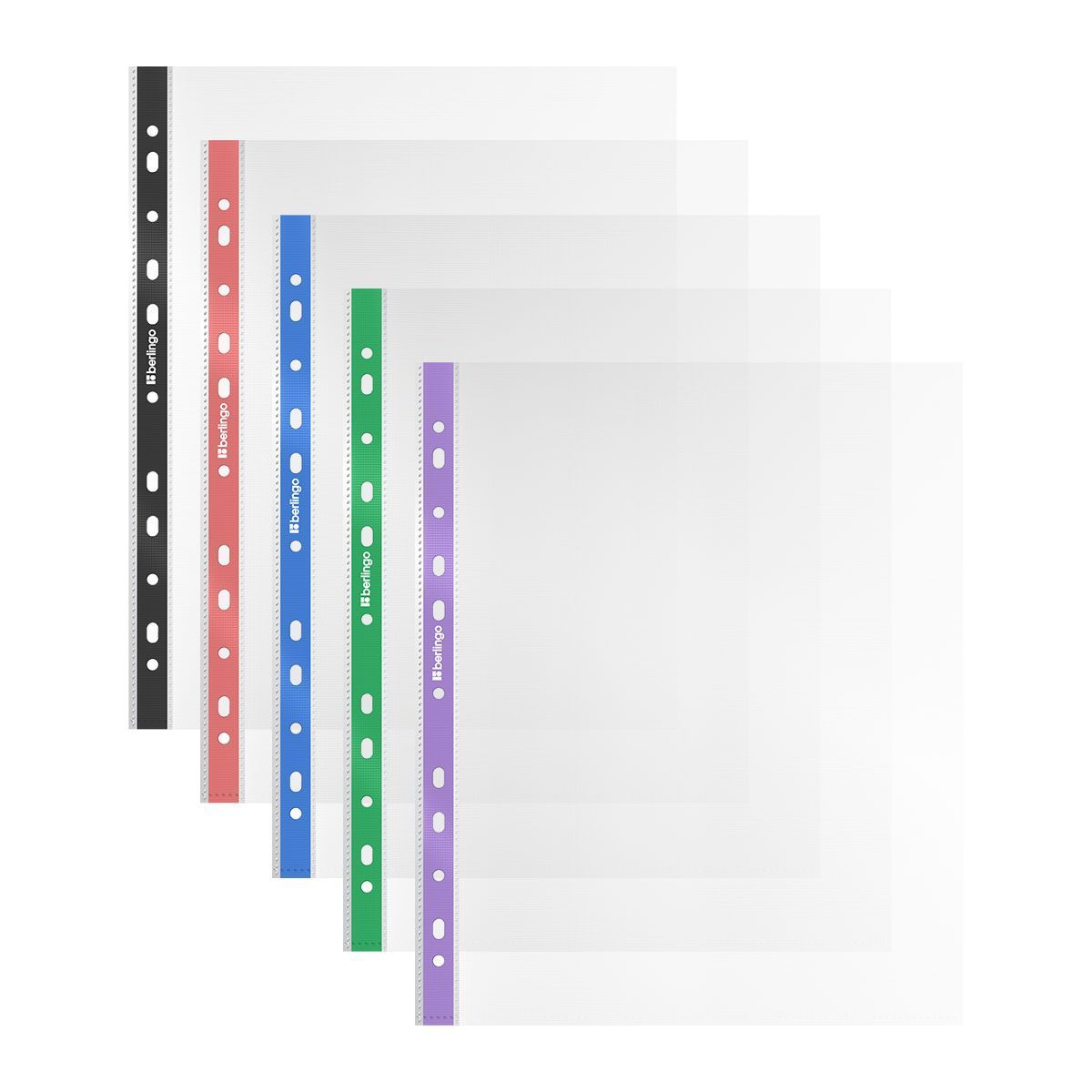Папка-вкладыш с перфорацией Berlingo "Squares", А4, 40мкм, рельефная текстура, матовая, с цветным корешком, ассорти