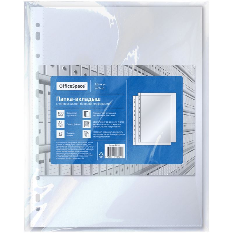 Папка-вкладыш с перфорацией (файл) OfficeSpace А4, 25мкм, глянцевая