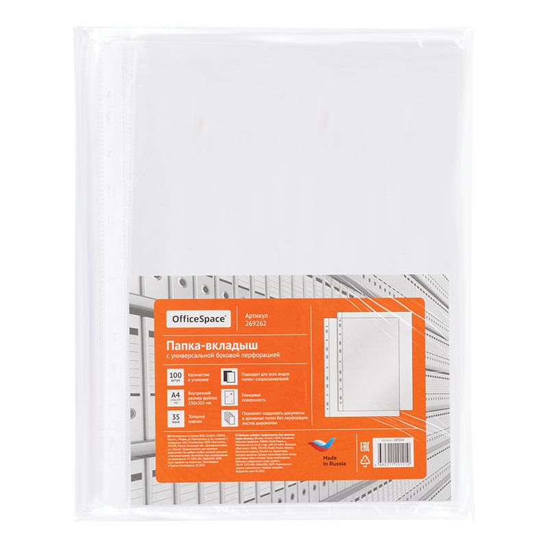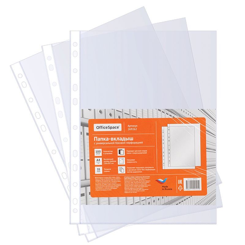Папка-вкладыш с перфорацией (файл) OfficeSpace А4, 35мкм, глянцевая