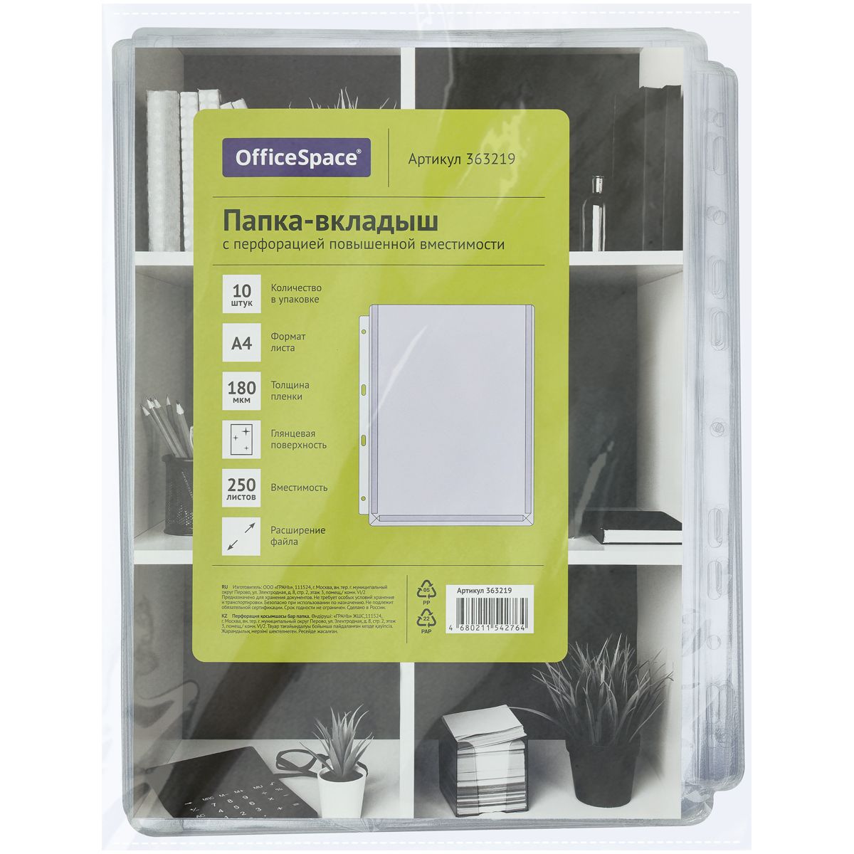 Папка-вкладыш с перфорацией OfficeSpace А4, ПВХ, 180мкм, глянцевая, расширяющаяся до 250л.