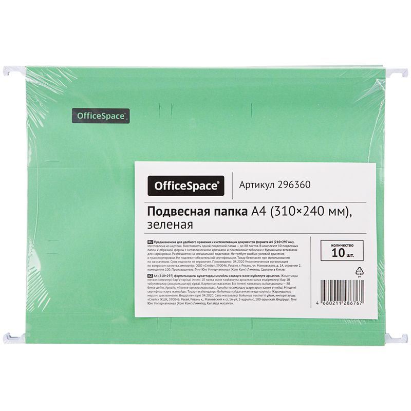 Подвесная папка OfficeSpace А4 (310*240мм), зеленая