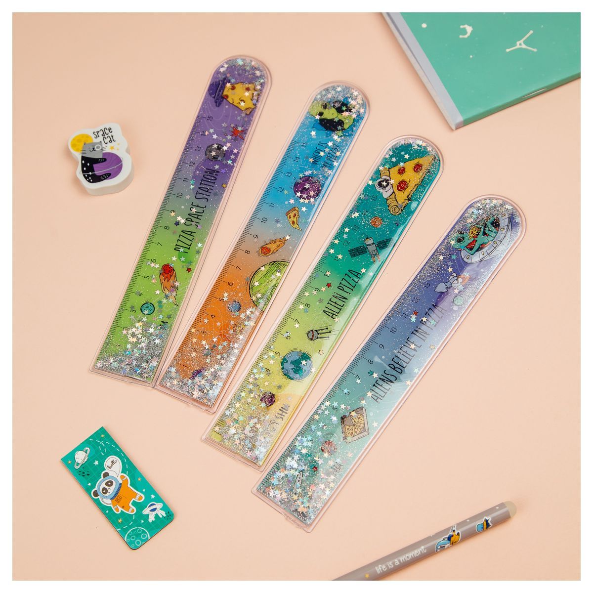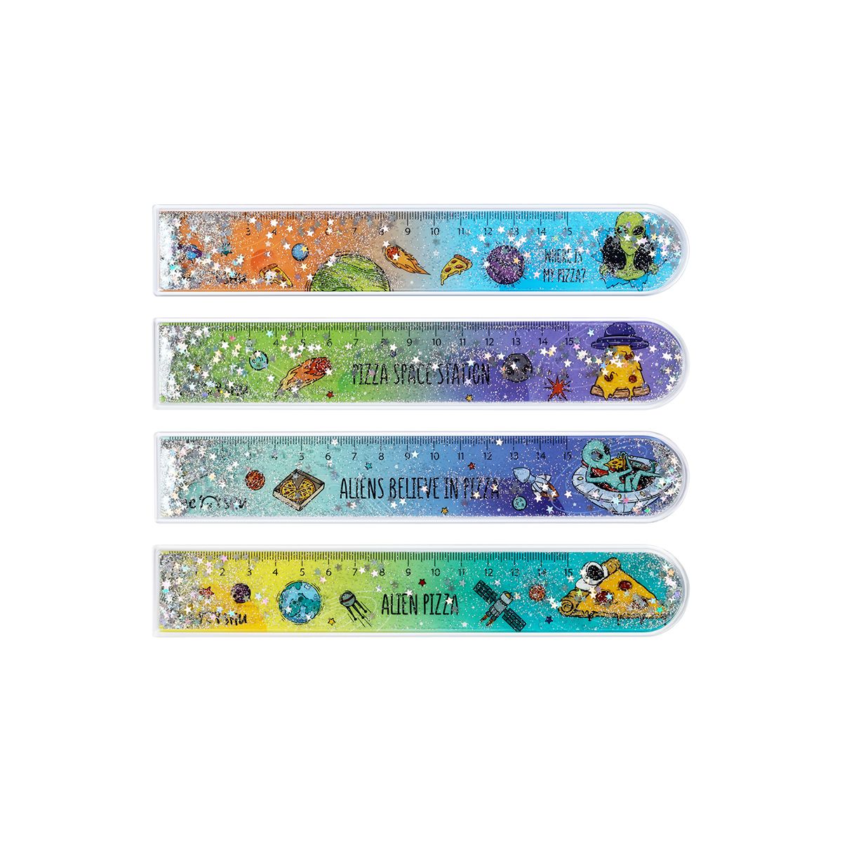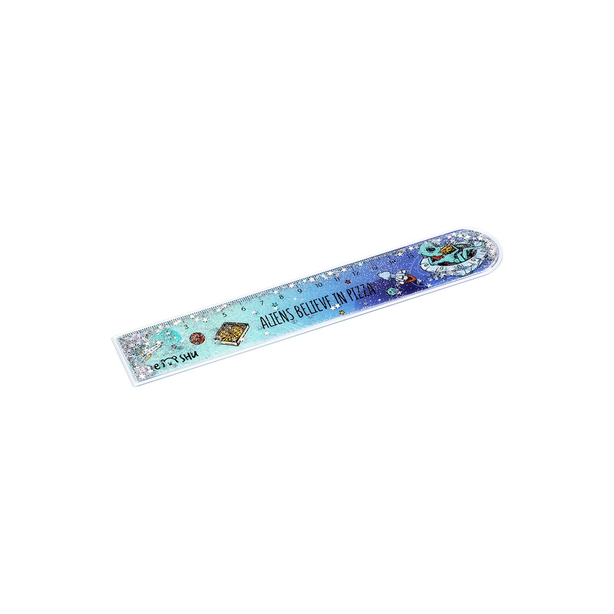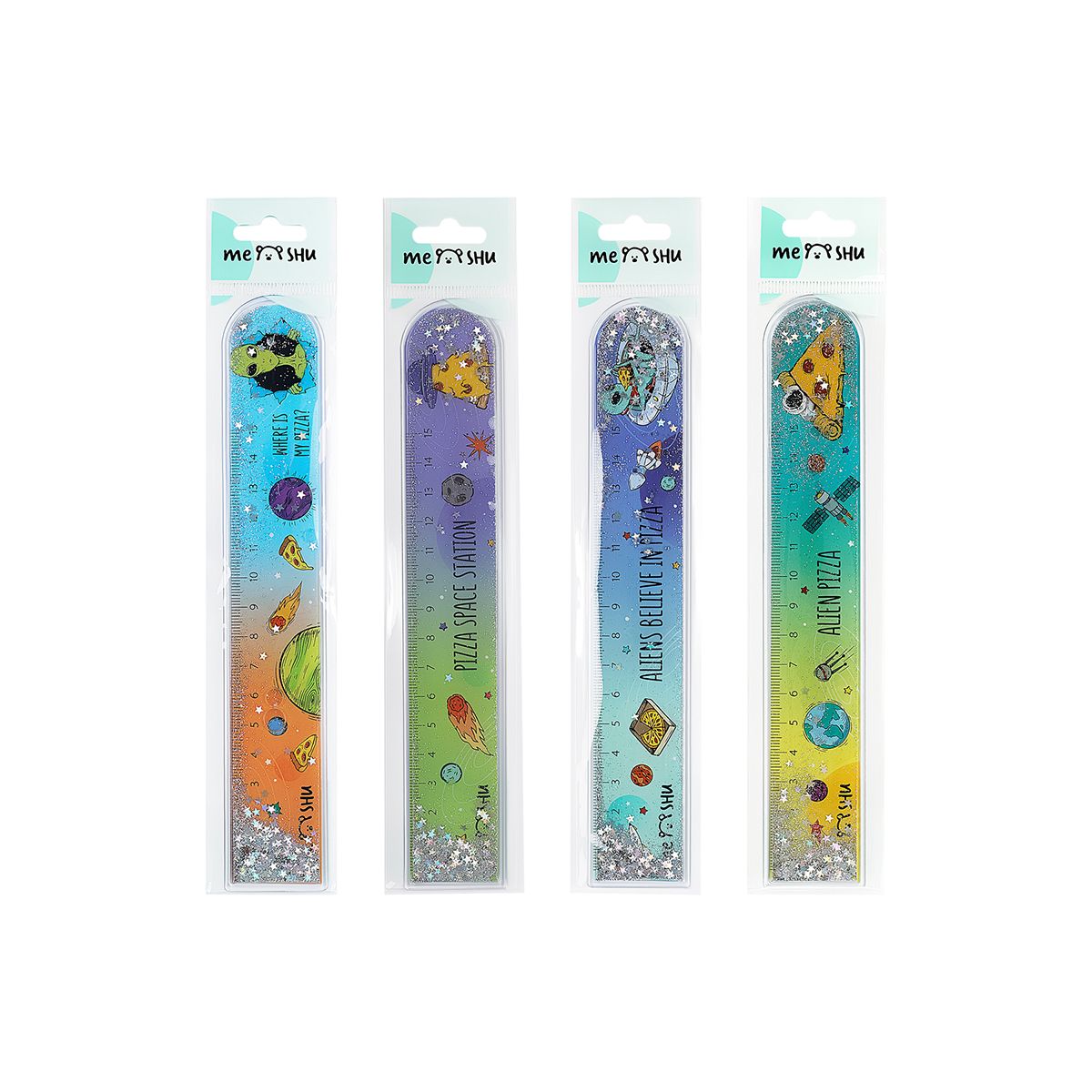 Линейка 15см MESHU "Alien pizza" ПВХ с блестками, ассорти, европодвес