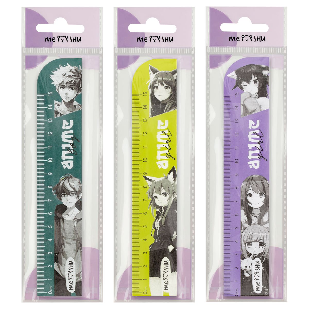 Линейка 15см MESHU "Anime", деревянная, ассорти, европодвес