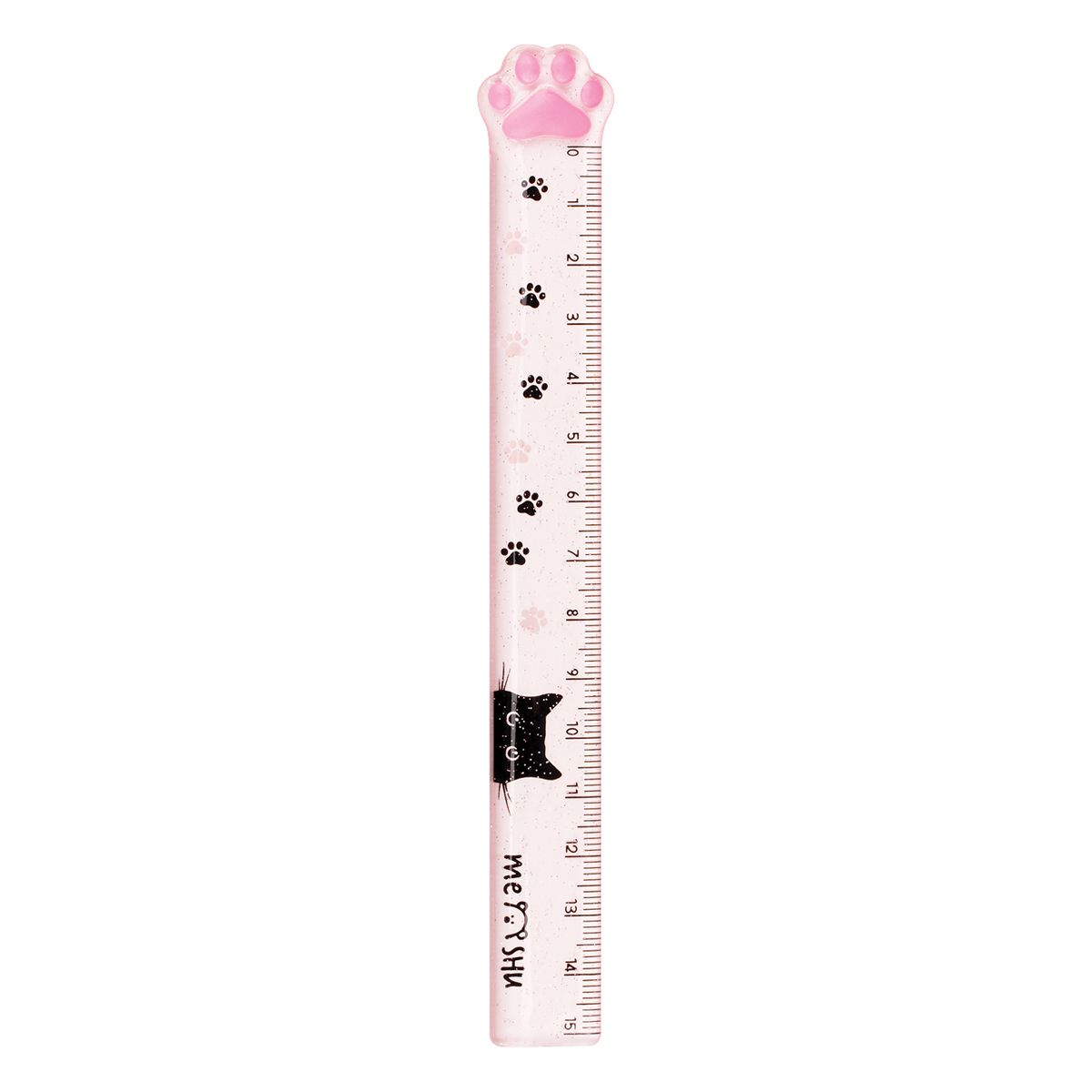 Линейка 15см MESHU "Paw", пластиковая, тонированная, с блестками, европодвес