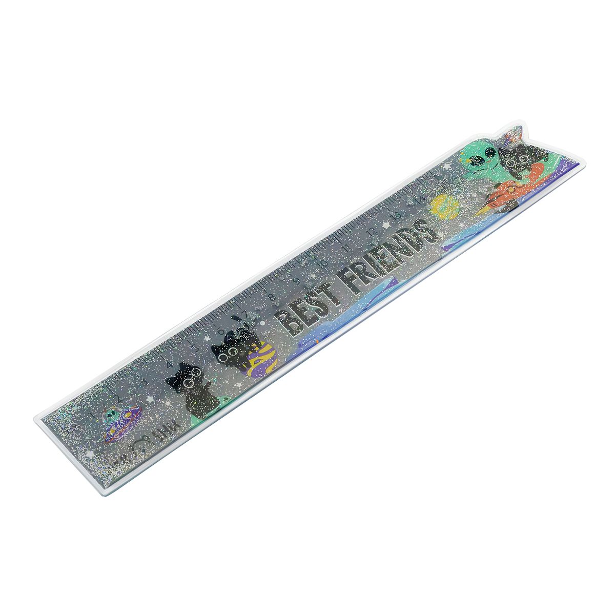 Линейка 15см MESHU "Space Cat" ПВХ с блестками, ассорти, европодвес