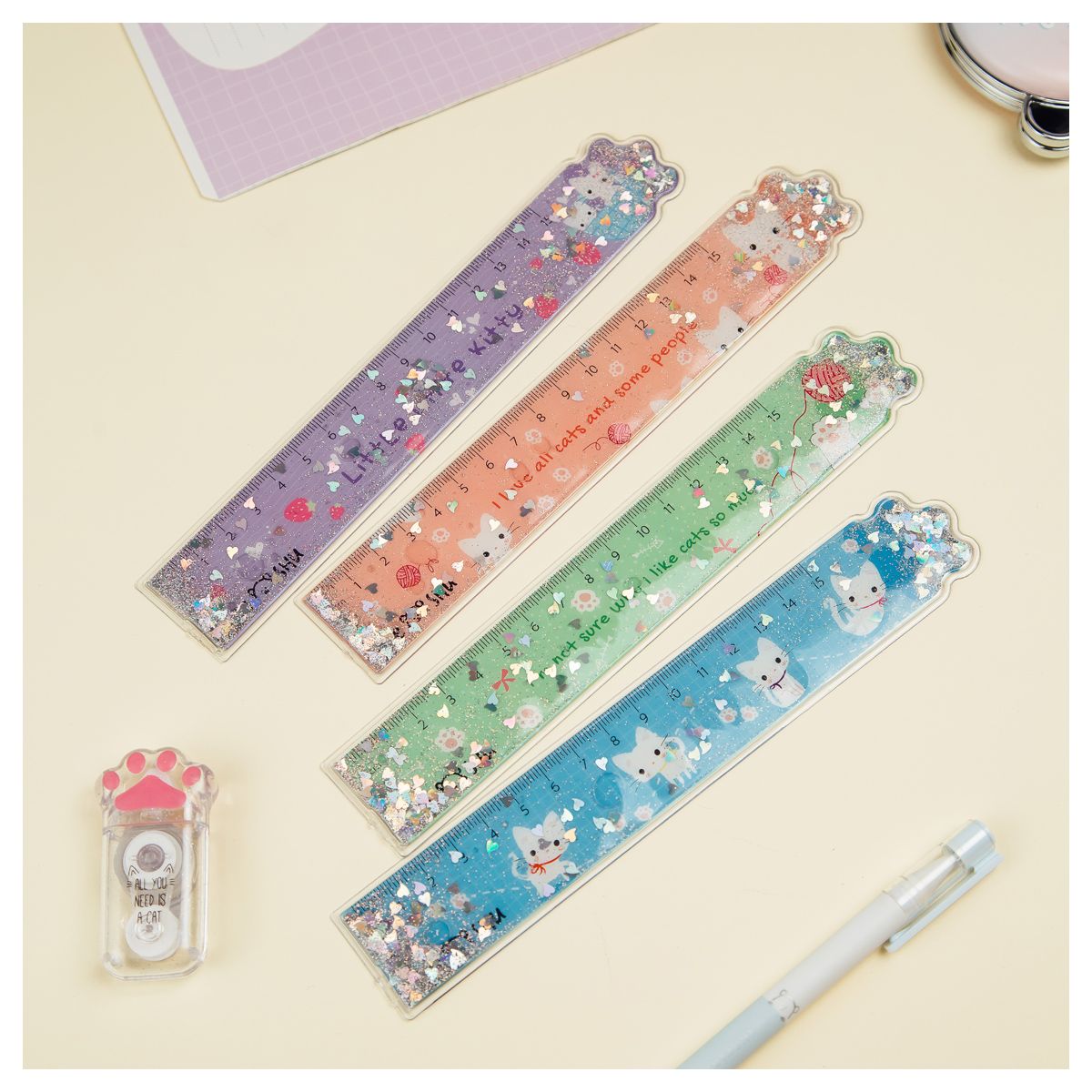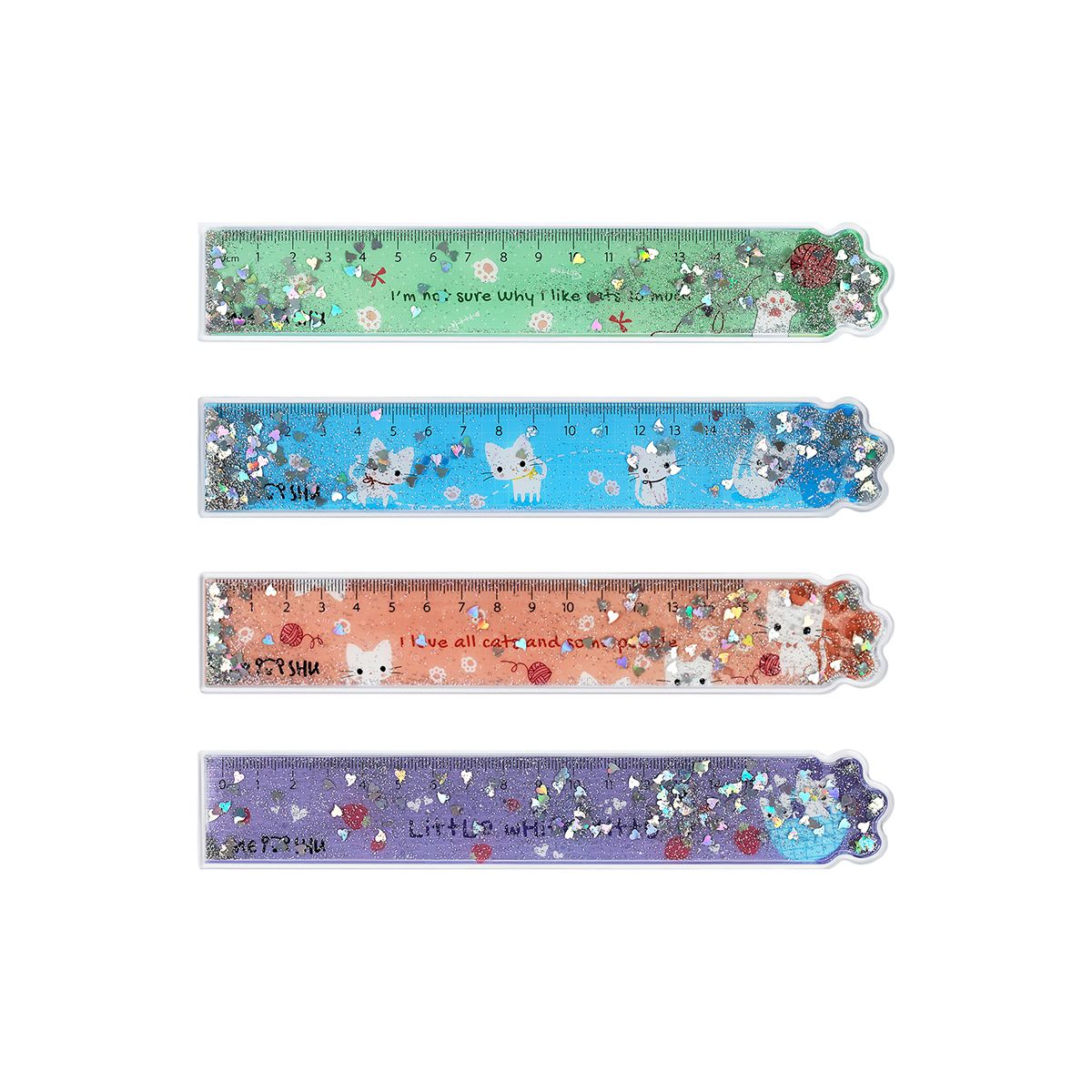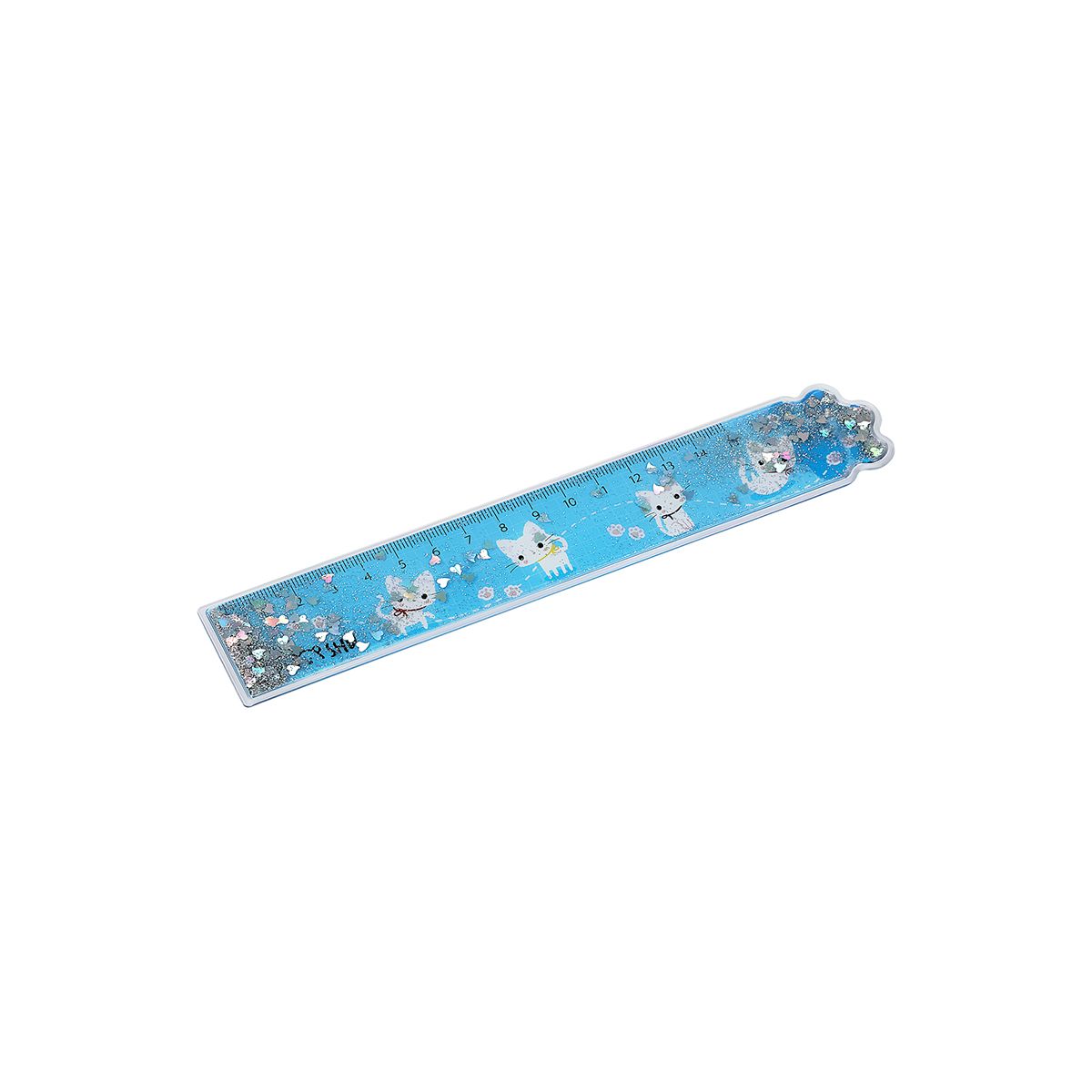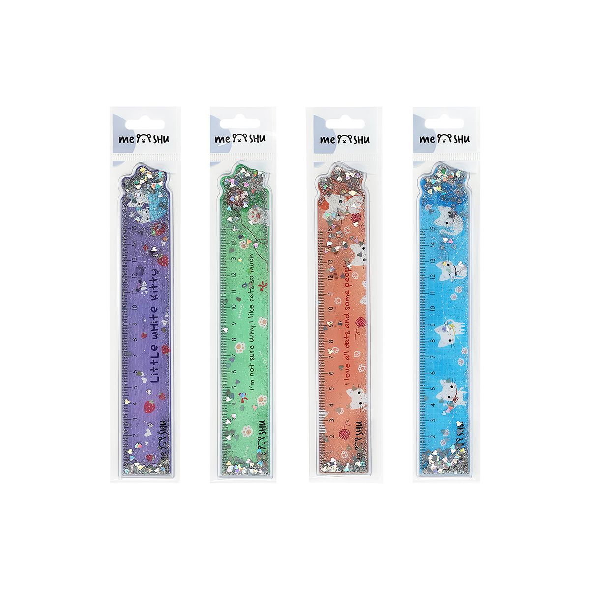 Линейка 15см MESHU "White kitty" ПВХ с блестками, ассорти, европодвес