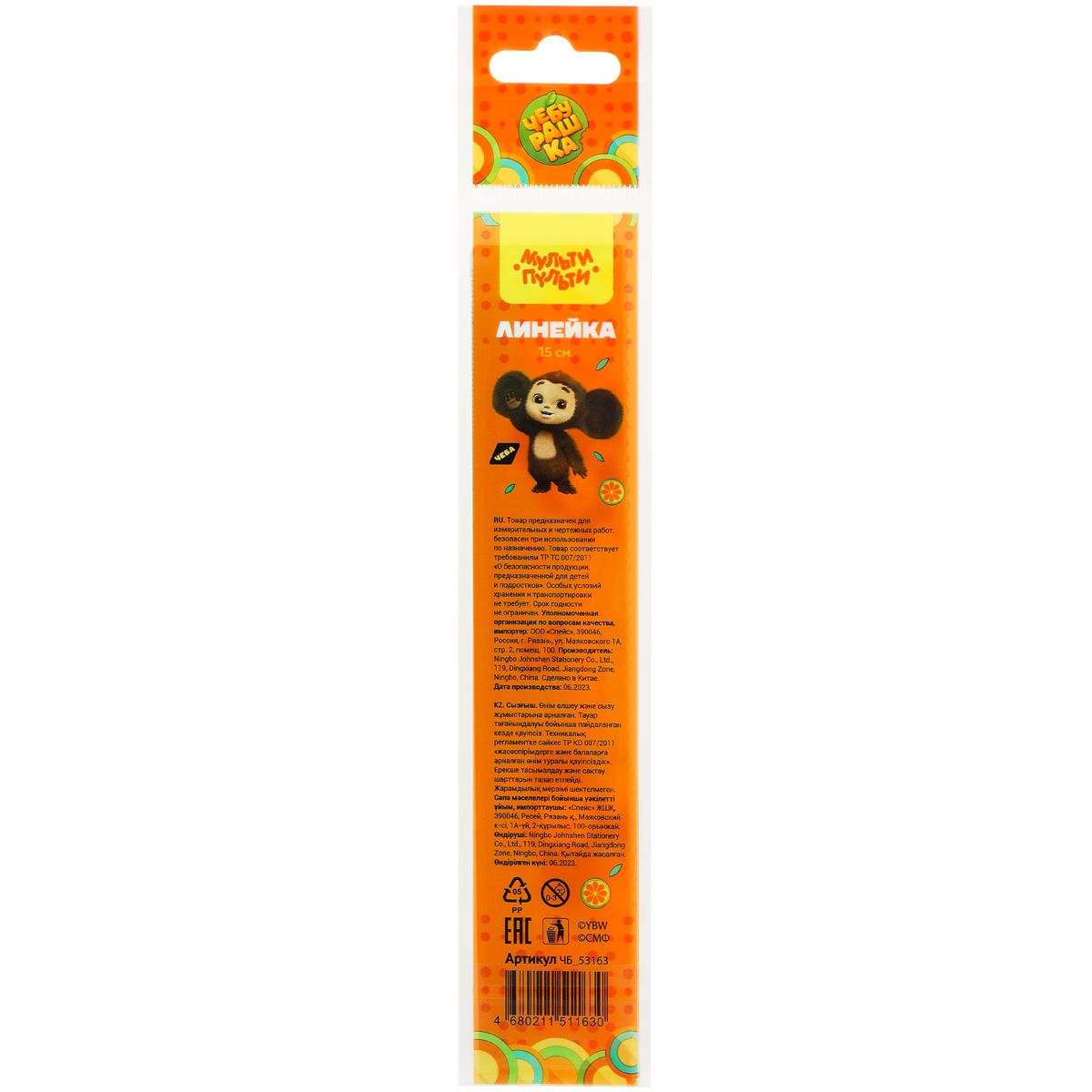 Линейка 15см Мульти-Пульти "Чебурашка", с принтом