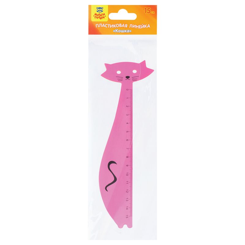 Линейка 15см Мульти-Пульти "Кошка", пластиковая, прозрачная, розовая европодвес