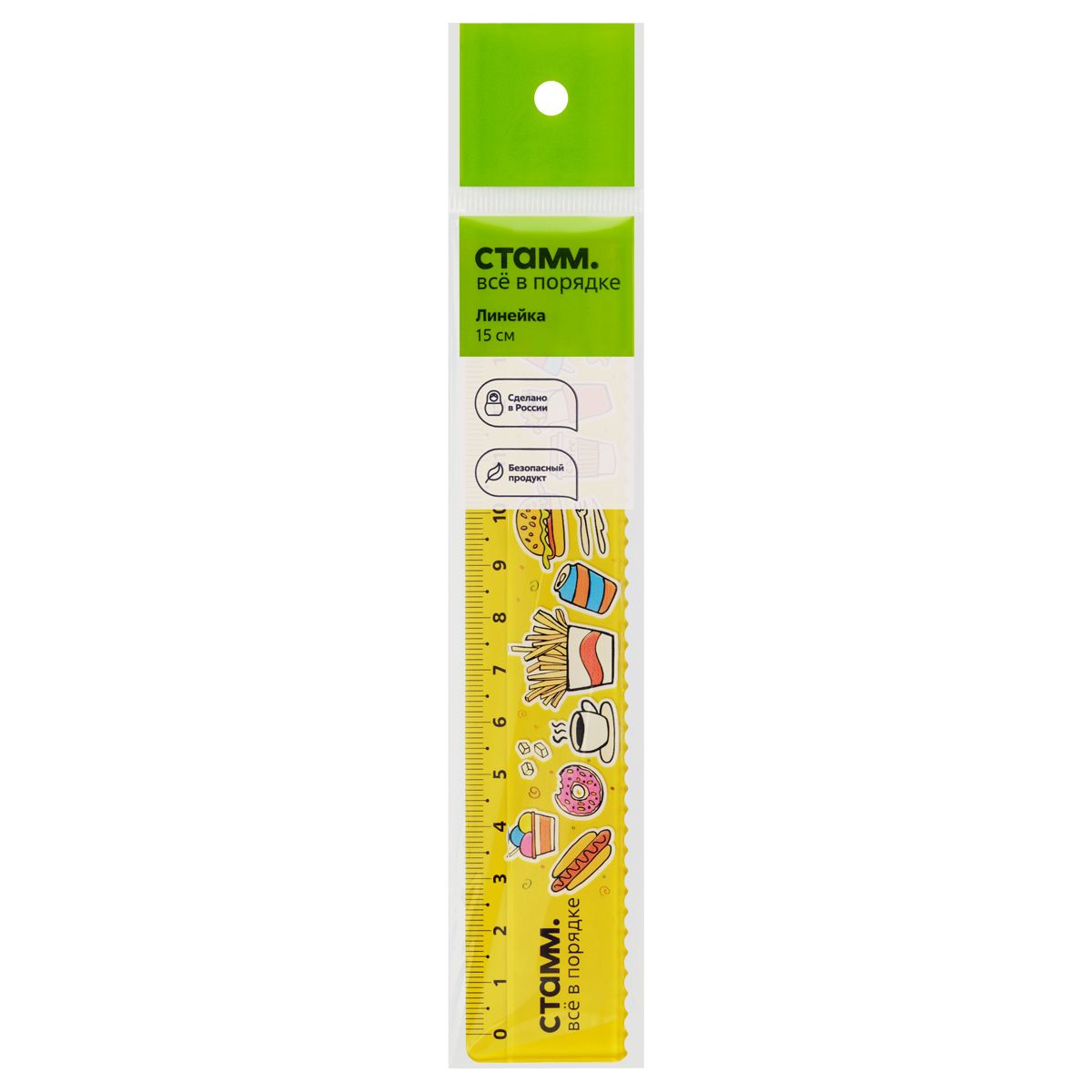 Линейка 15см СТАММ "Фастфуд", пластиковая, с волнистым краем, европодвес
