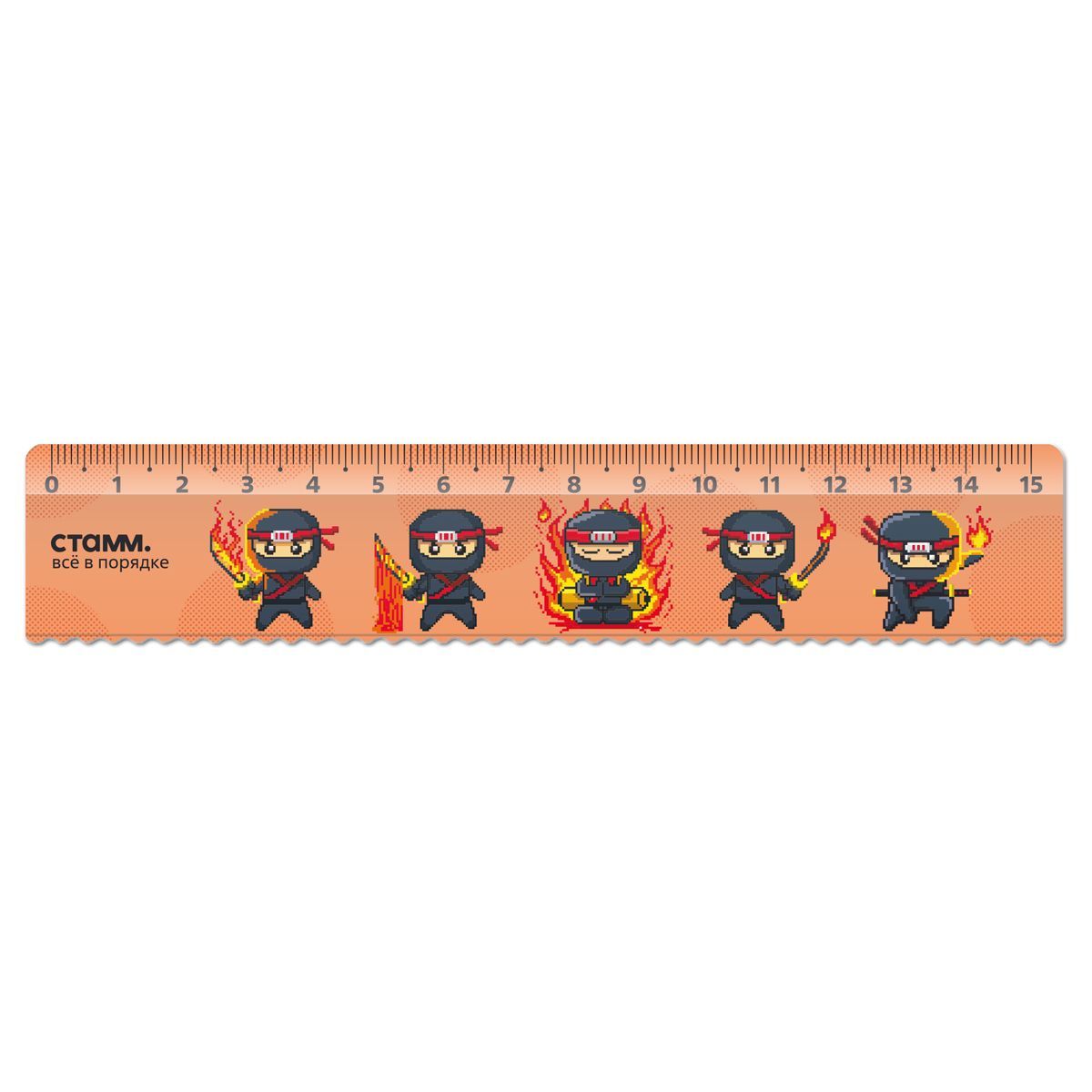 Линейка 15см СТАММ "Ниндзя", пластиковая, с волнистым краем, европодвес
