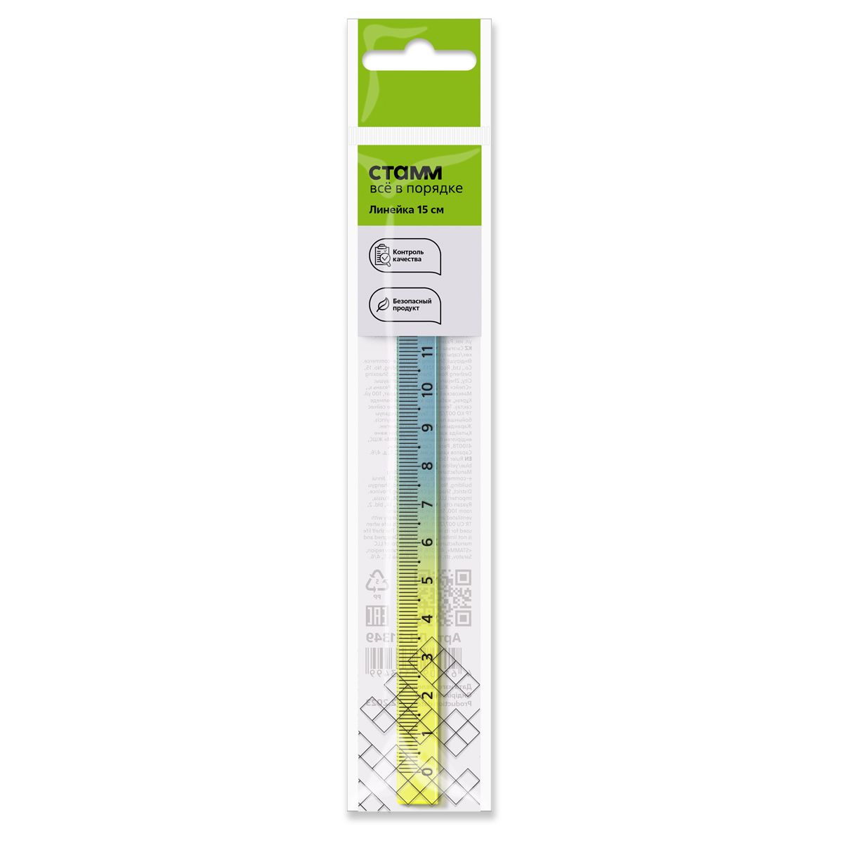 Линейка 15см СТАММ, пластиковая, четырехгранная, голубой/желтый градиент, европодвес