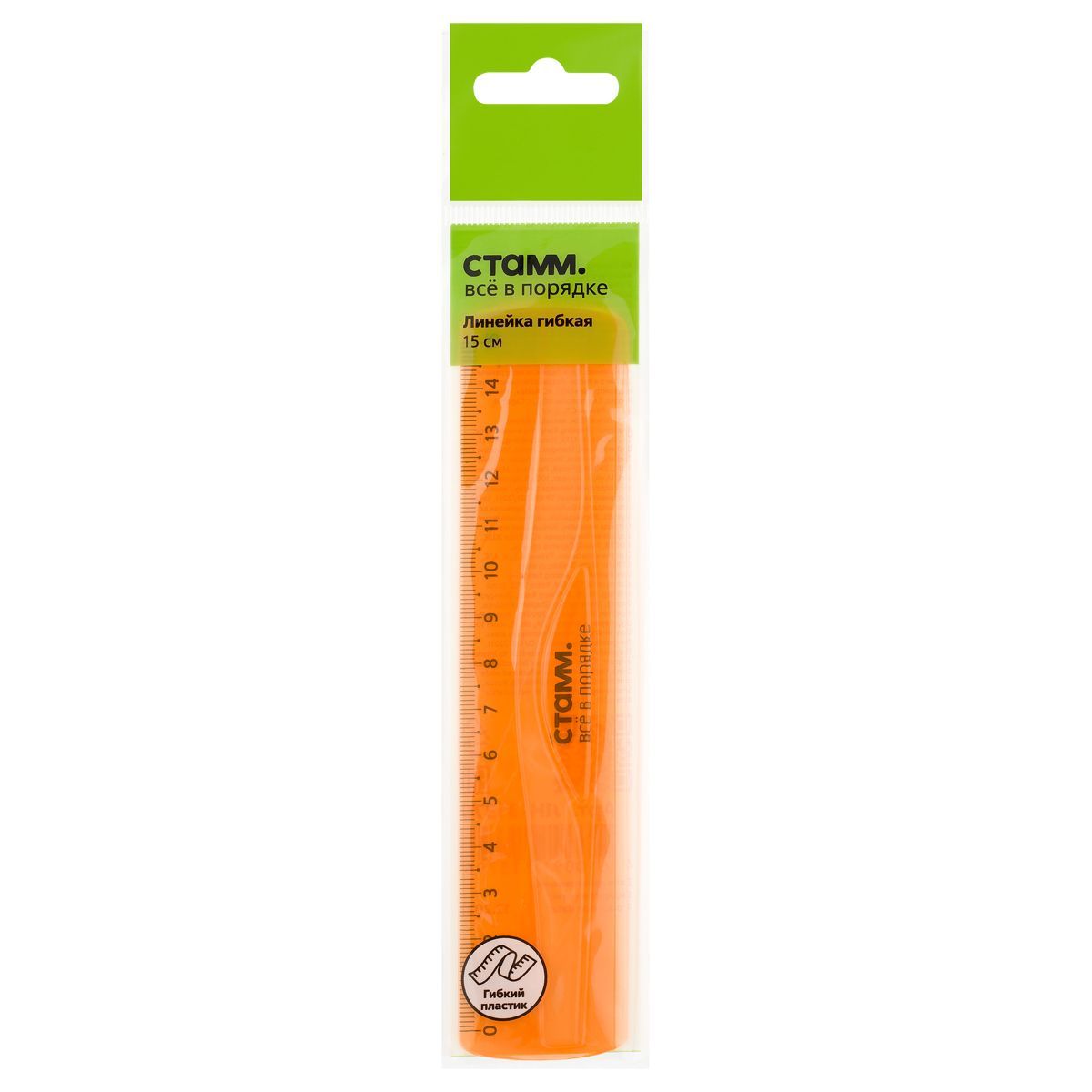 Линейка 15см СТАММ, пластиковая, гибкая, прозрачная, оранжевая, европодвес